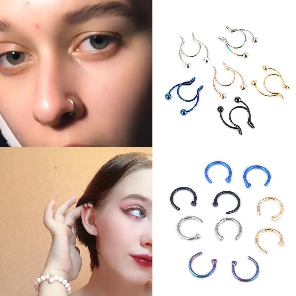 Женское кольцо для носа кольца в виде губ медицинская титановая сталь, кольцо для имитации пирсинга носа, носовой перегородки, клипса для имитации пирсинга, обруч для тела