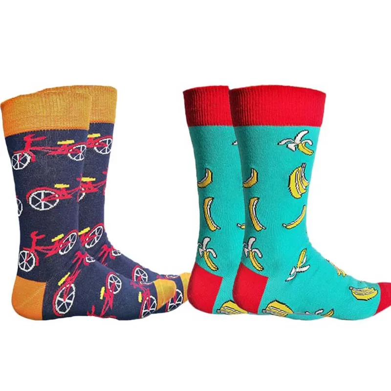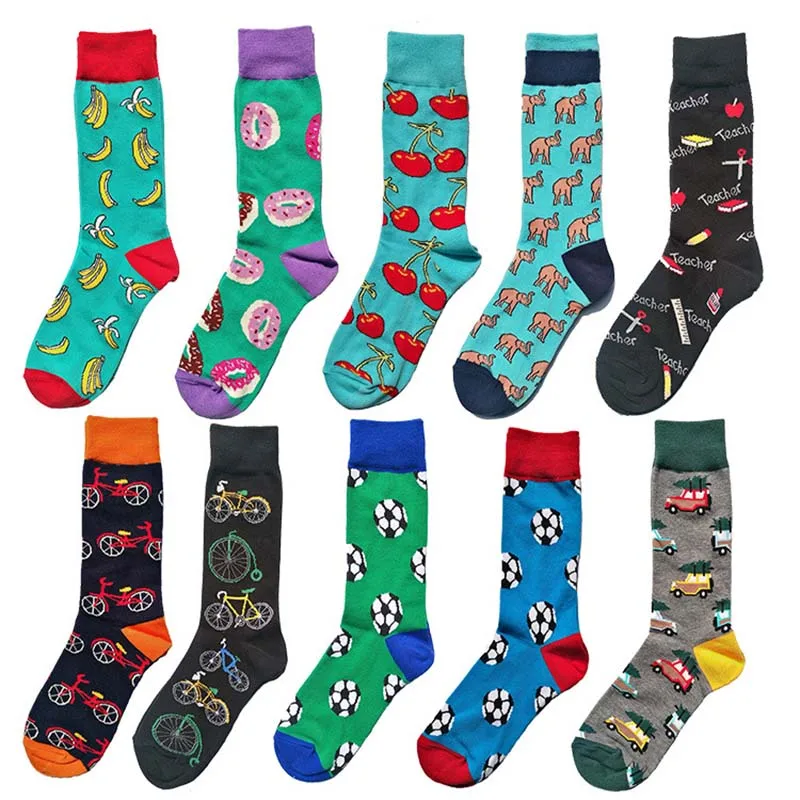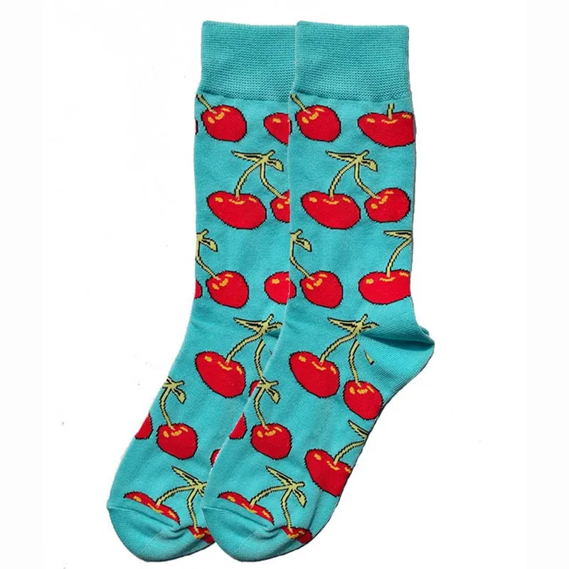 Забавные мужские носки, с забавным дизайном, новинка, хлопковые носки для учителей с вишней, бананом, пончиками, свадебные носки