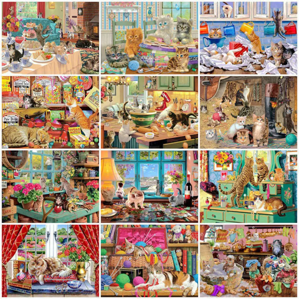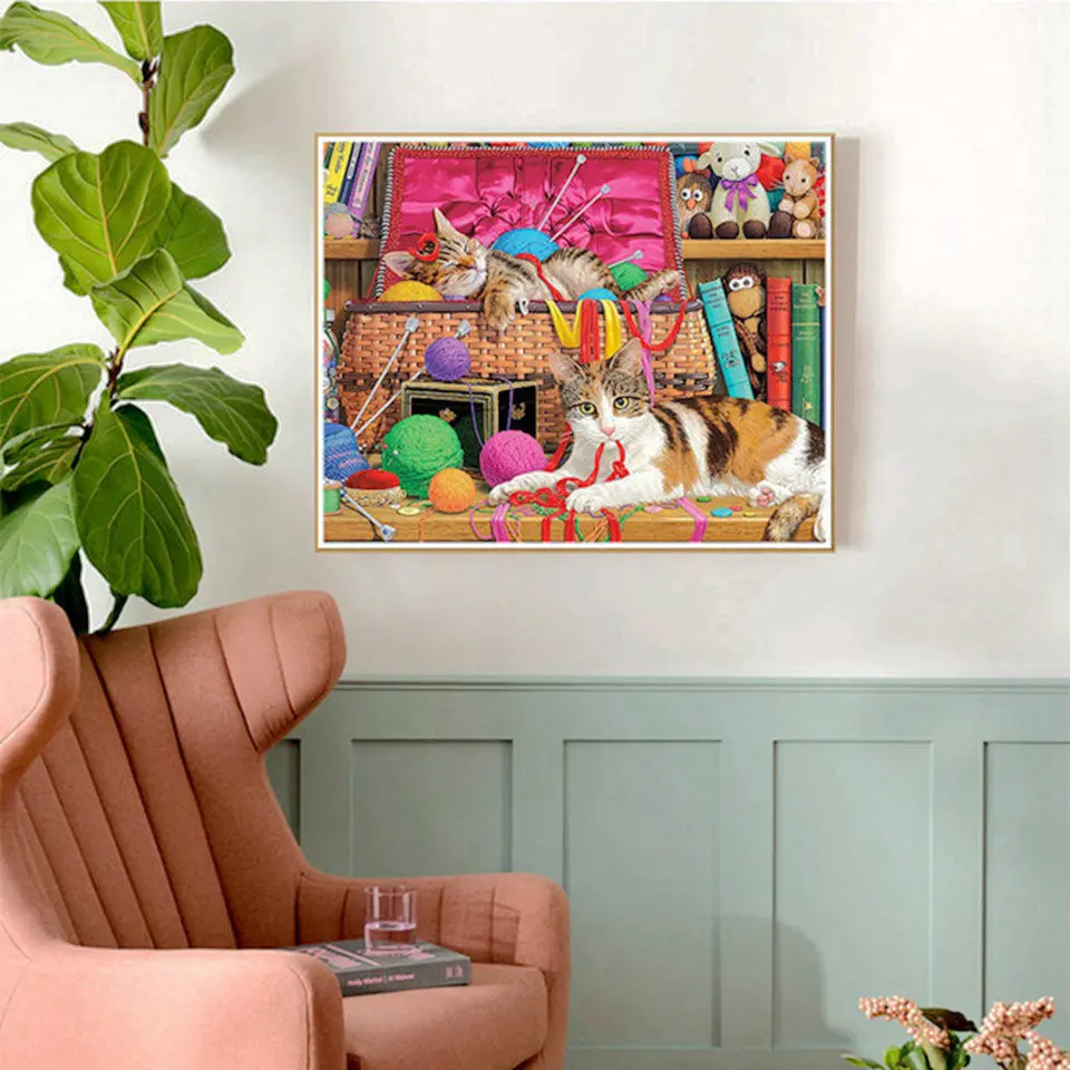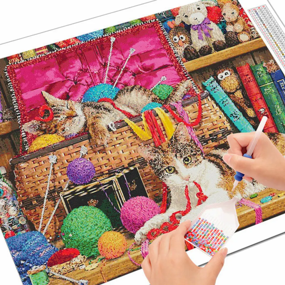 Алмазная живопись 5D "Животное кошка", алмазная инкрустация, вышивка крестиком, искусство, рукоделие и швейные иглы, украшение для детской комнаты, подарок, мозаика