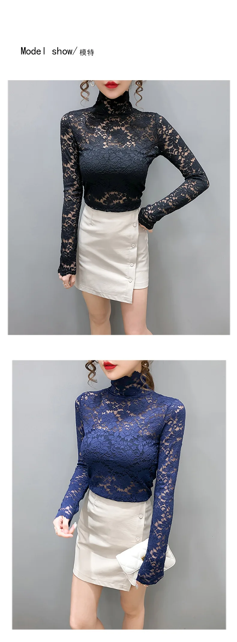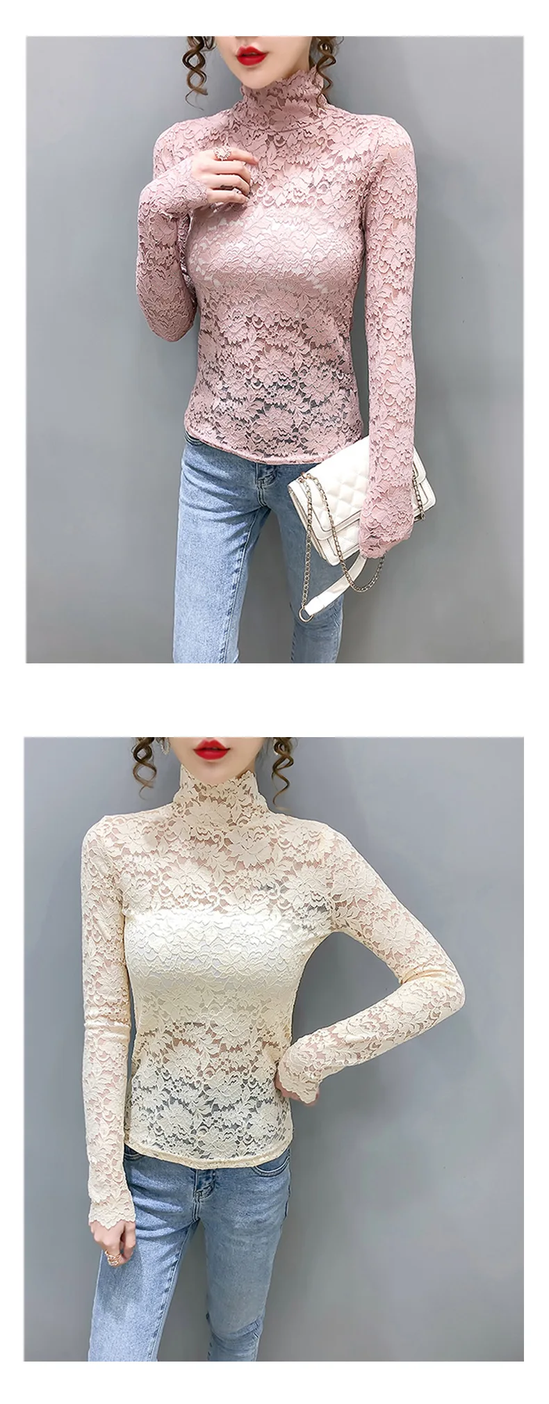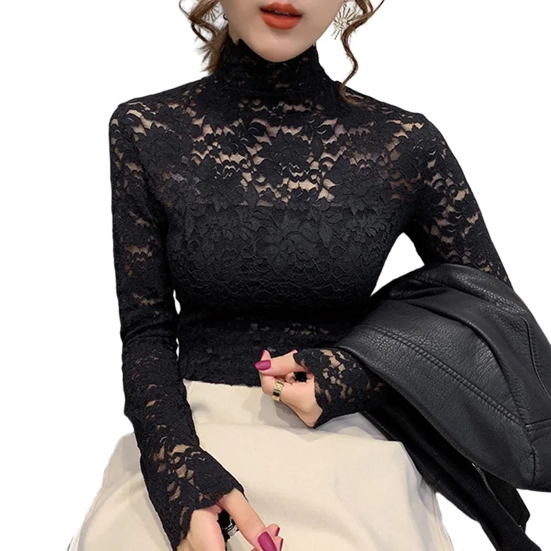 Осенняя Женская тонкая черная кружевная футболка, привлекательная Водолазка с длинным рукавом, тонкая кружевная вязаная крючком Футболка в стиле пэчворк, топы