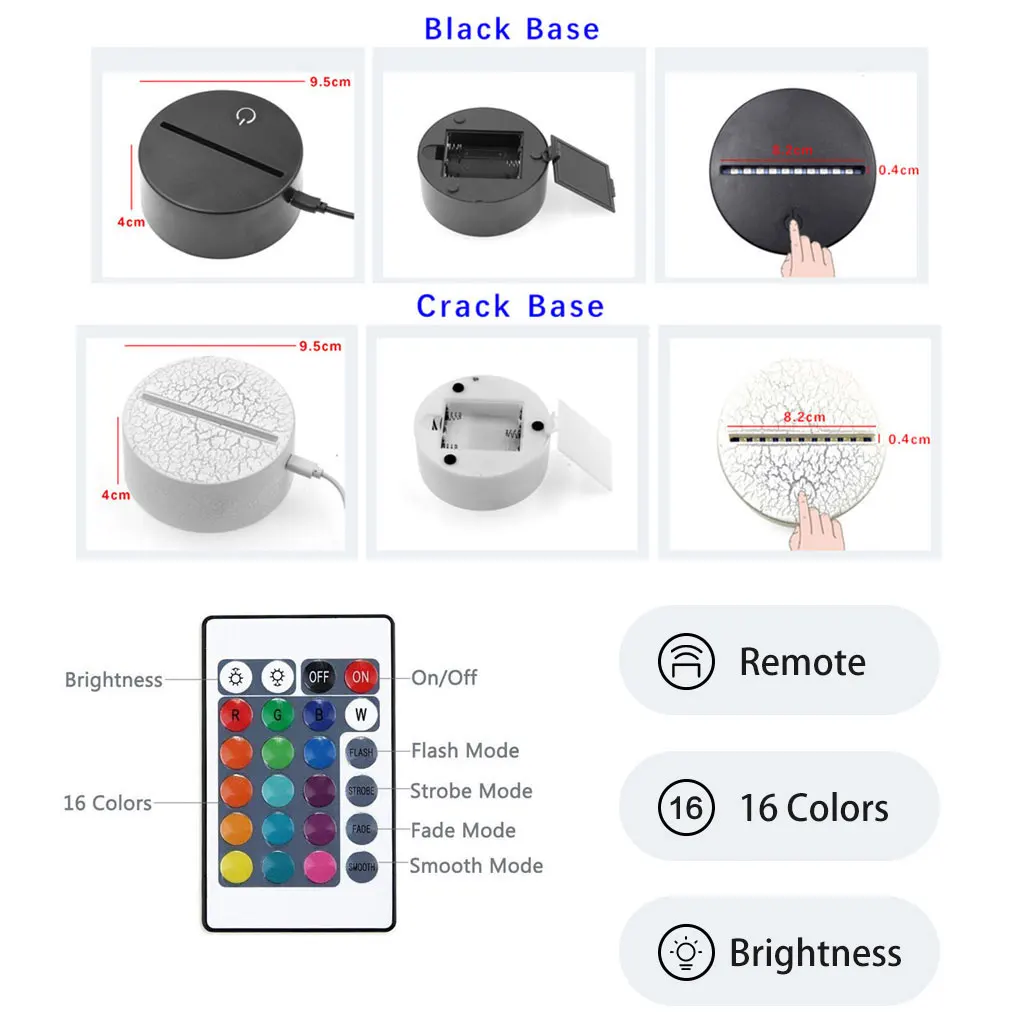 ✔. Если у вас есть индивидуальные требования, пожалуйста, откройте чат и отправьте нам фотографии, которые вы хотите сделать 3D ночной светильник.