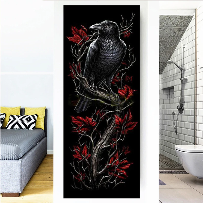 Алмазная мозаика 5D сделай сам, вышивка крестиком, ворона, дерево, красные листья, кленовый лист, круглая алмазная живопись, P94
