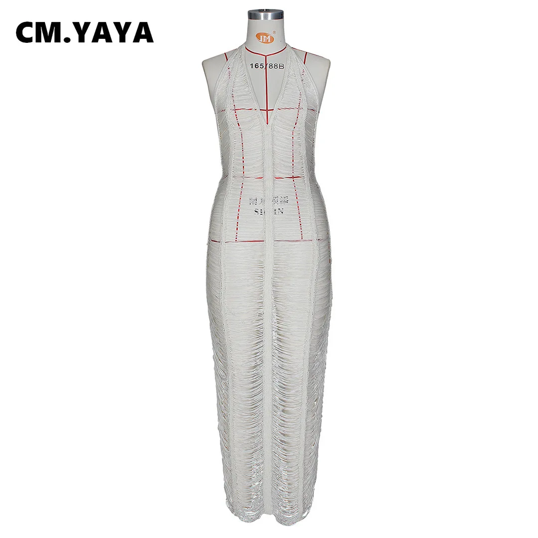 Женское длинное платье с V-образным вырезом CM.YAYA, однотонное платье без рукавов, с V-образным вырезом, пикантное летнее платье для новечерние клуба