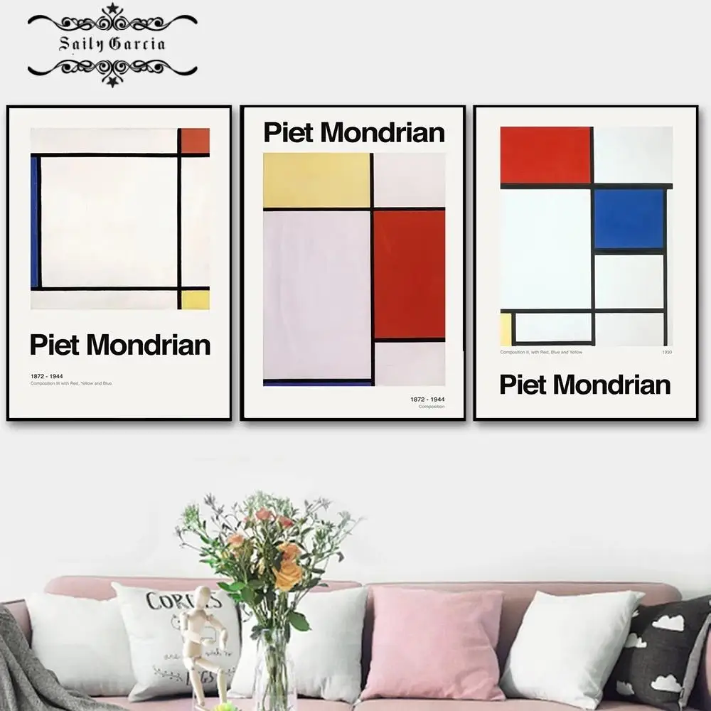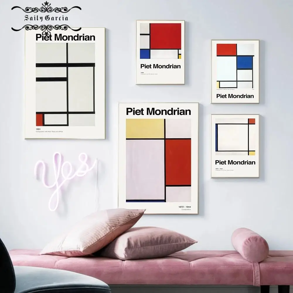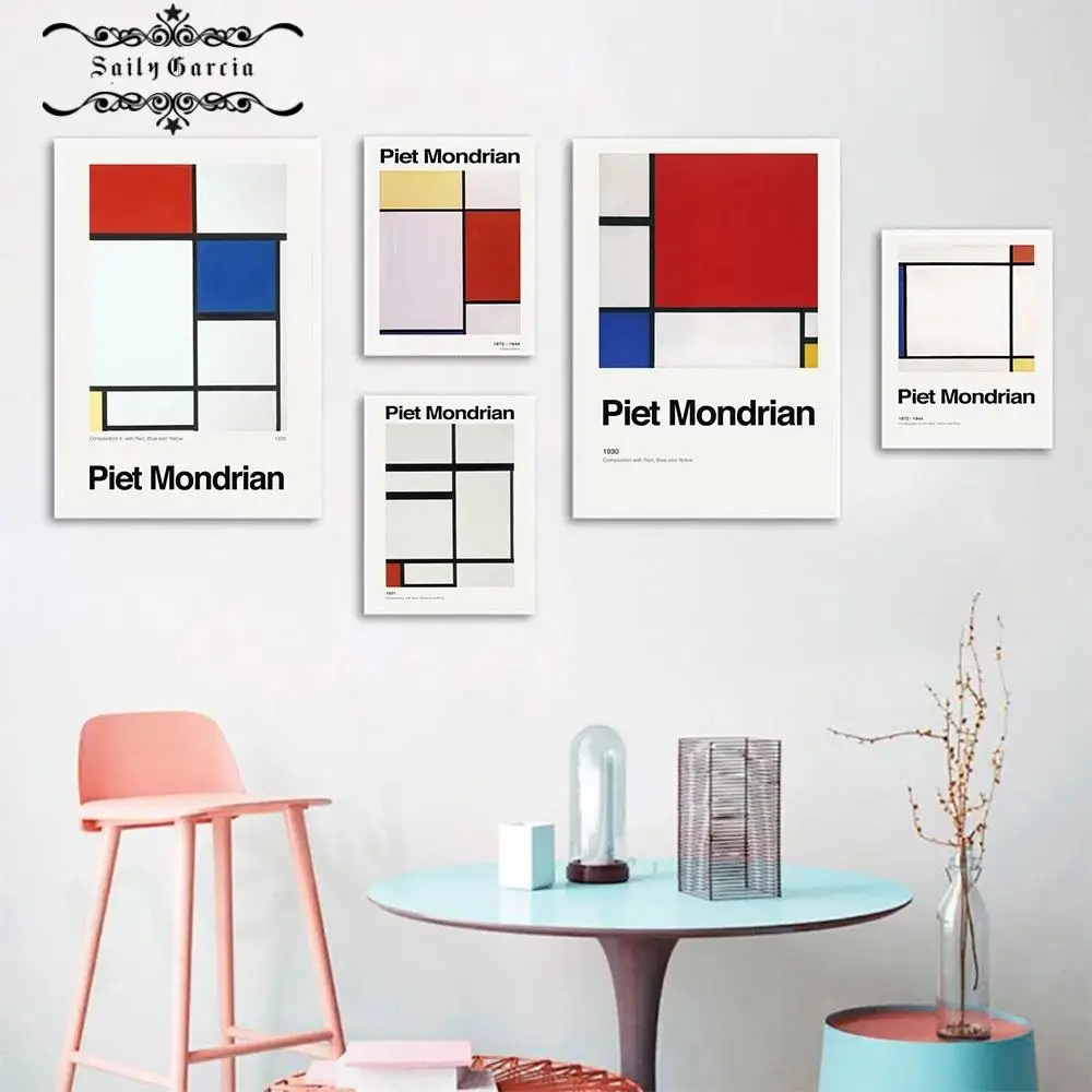 Композиция Mondrian, художественный Классический плакат, красная, черная, белая линия, холст, живопись, печать, современный настенный Декор, картины для гостиной