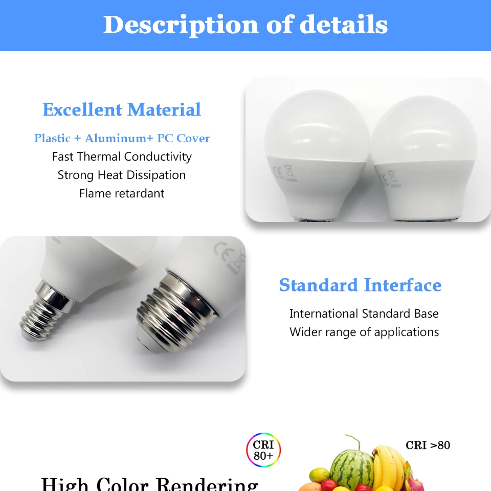 2 шт., Светодиодные лампы E14 E27 AC 220 В G45 3 Вт 5 Вт 6 Вт 7 Вт