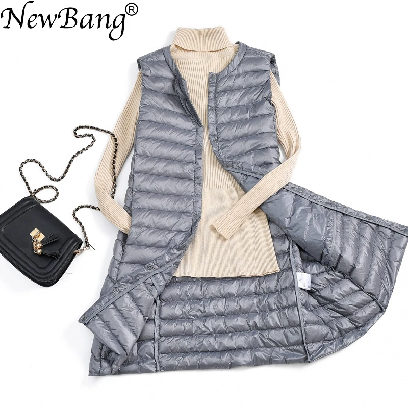 Повседневный ссветильник легкий пуховой жилет NewBang, Женский Длинный жилет, ветрозащитный легкий теплый жилет, Женский пуховой длинный тонкий безрукавник