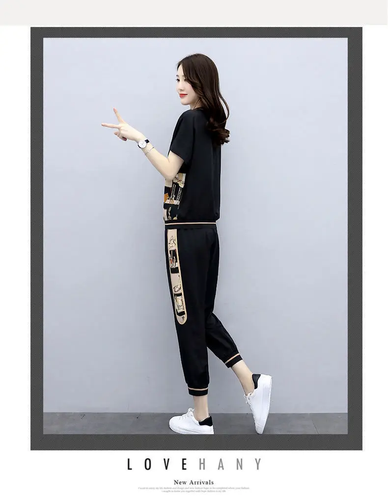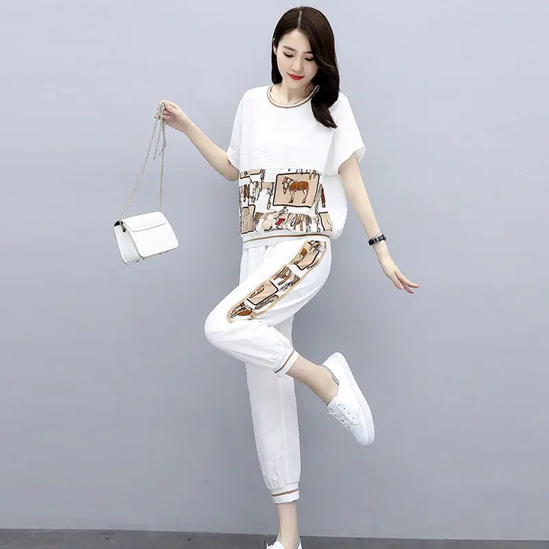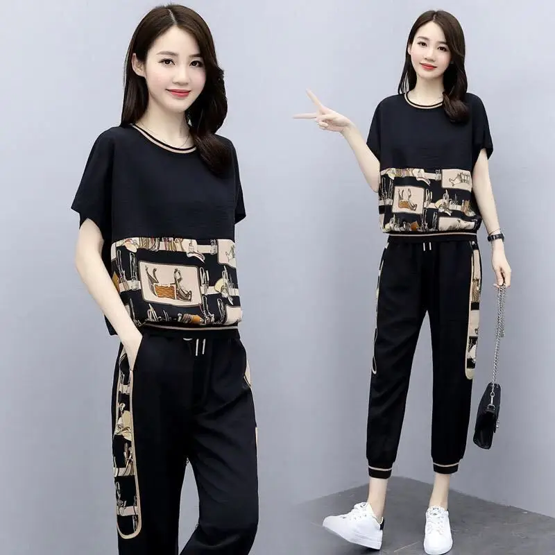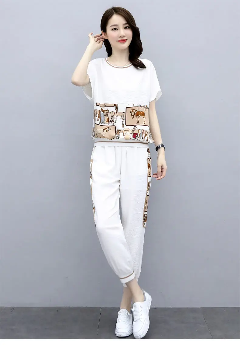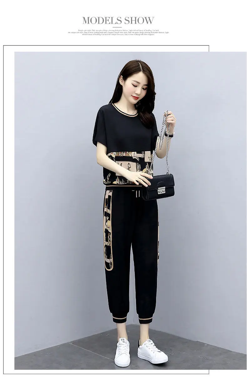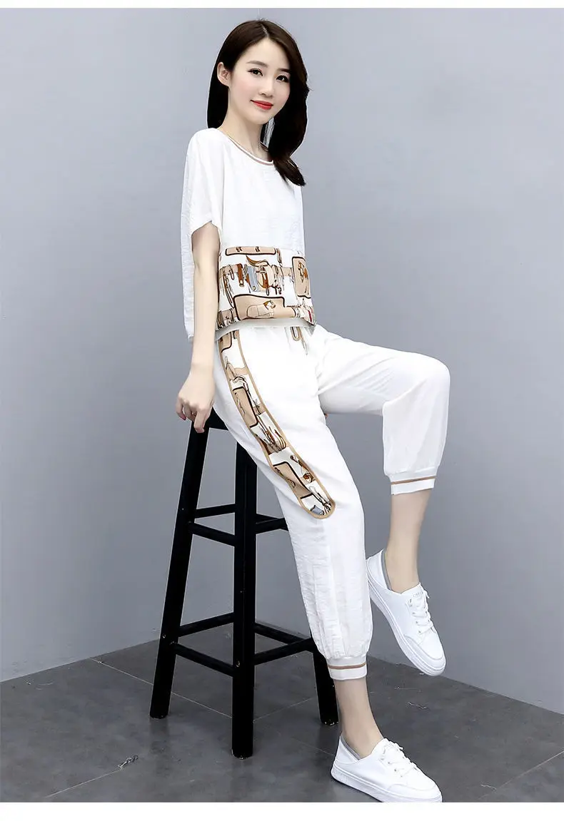 Комплекты из топа и брюк, спортивный костюм для отдыха, женский летний свободный Универсальный спортивный костюм с коротким рукавом, блузки, одежда, костюм для тренировок