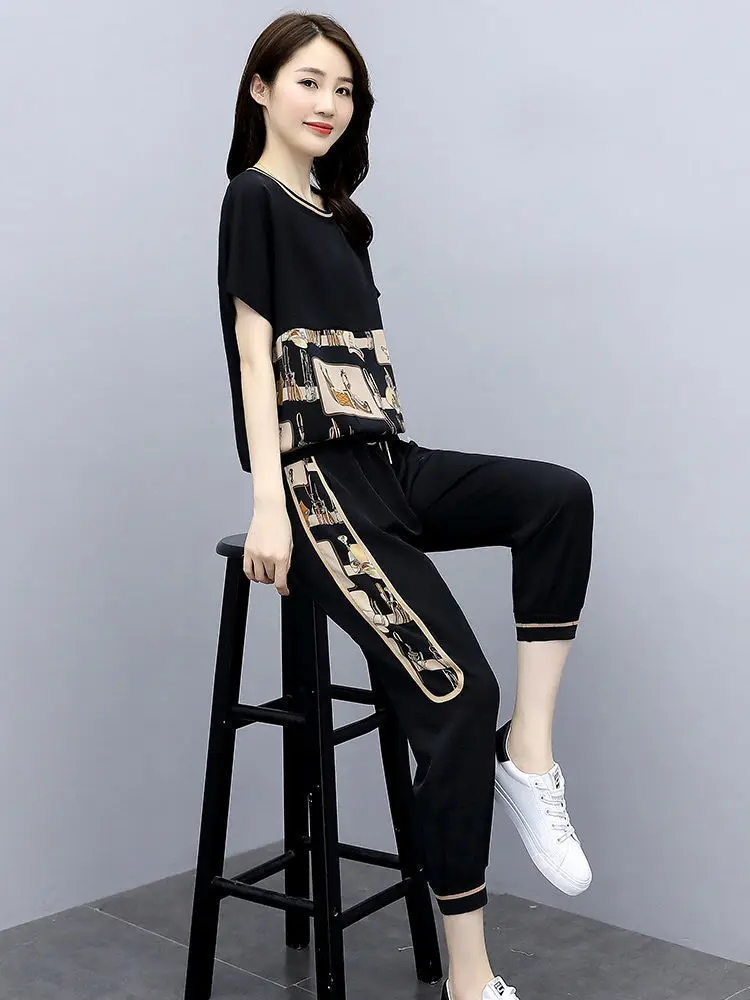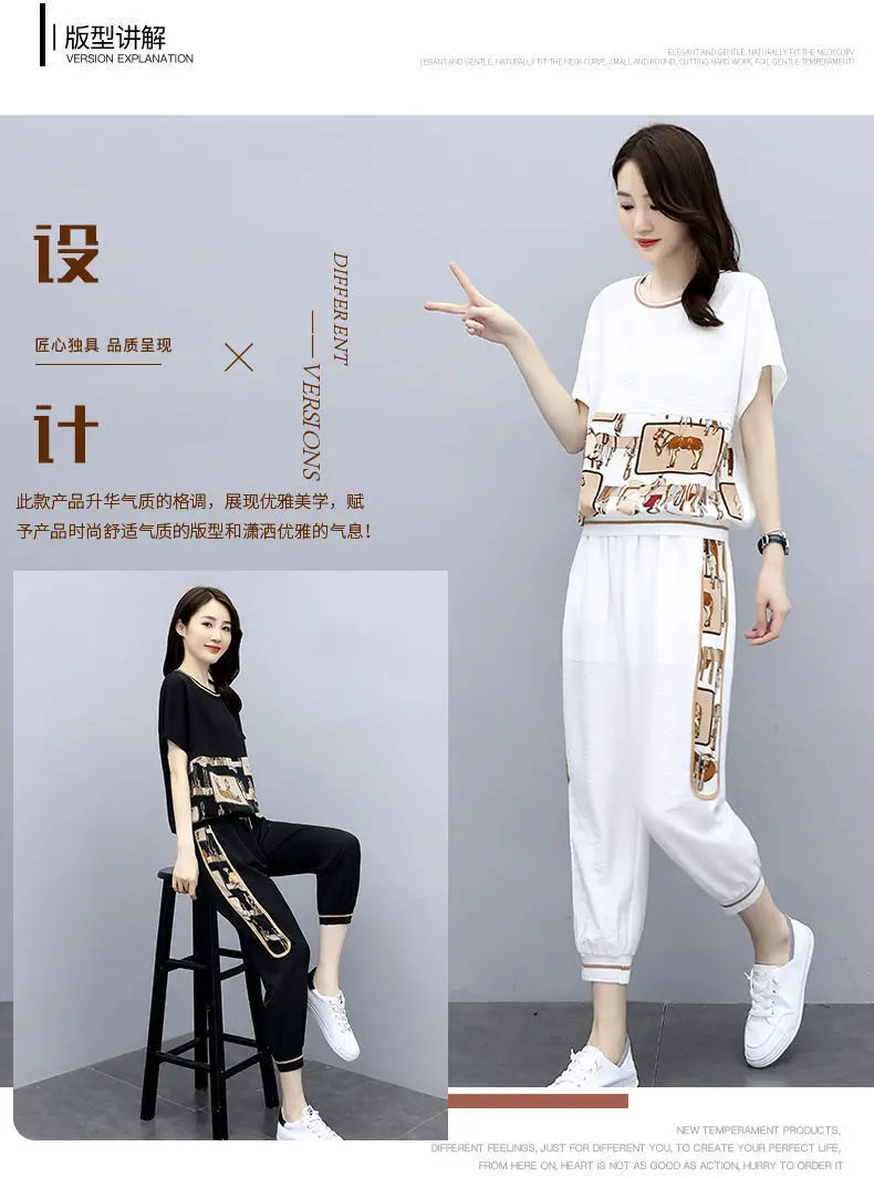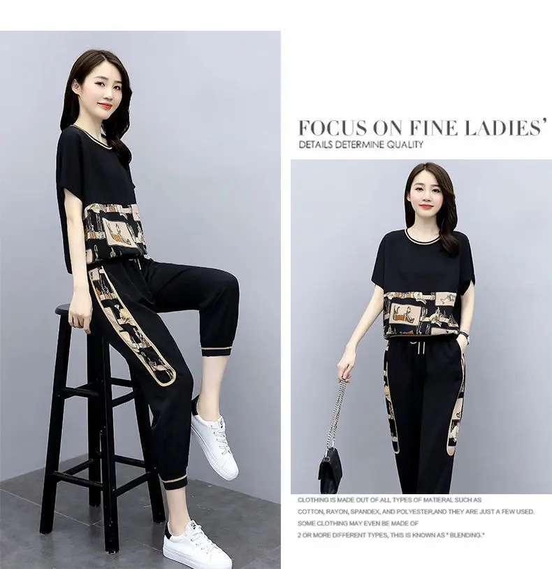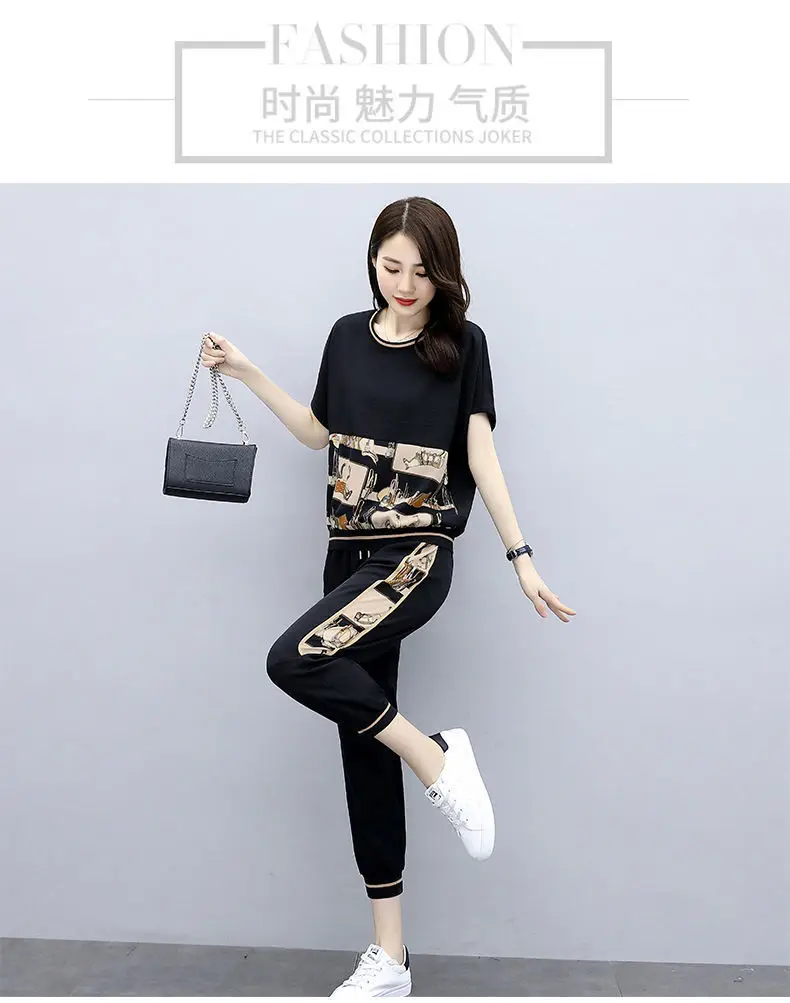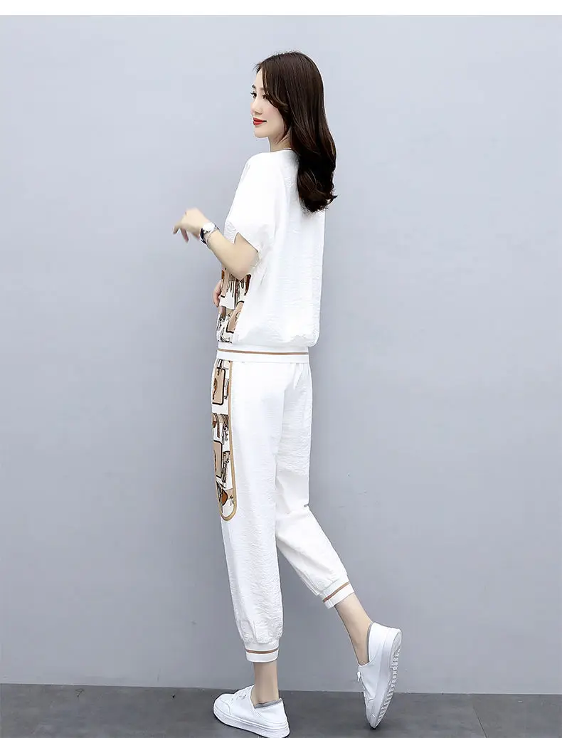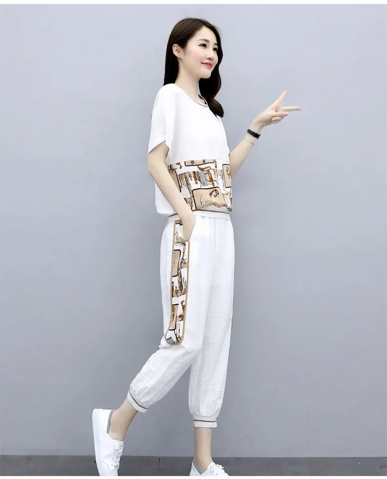 Комплекты из топа и брюк, спортивный костюм для отдыха, женский летний свободный Универсальный спортивный костюм с коротким рукавом, блузки, одежда, костюм для тренировок