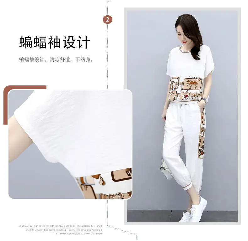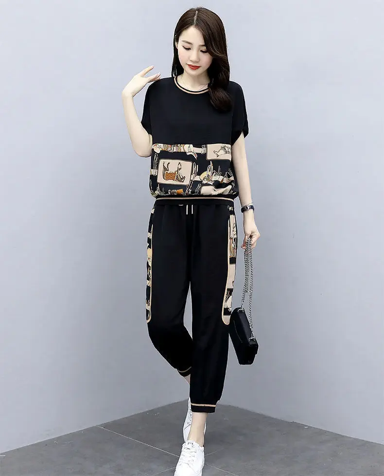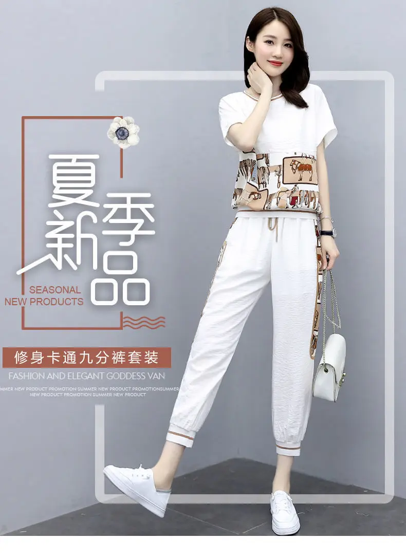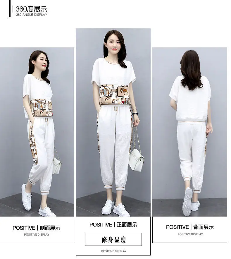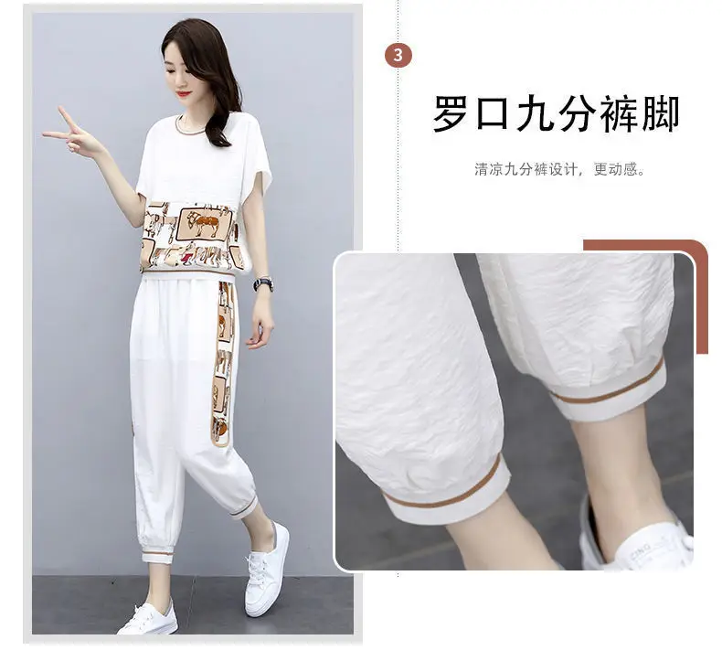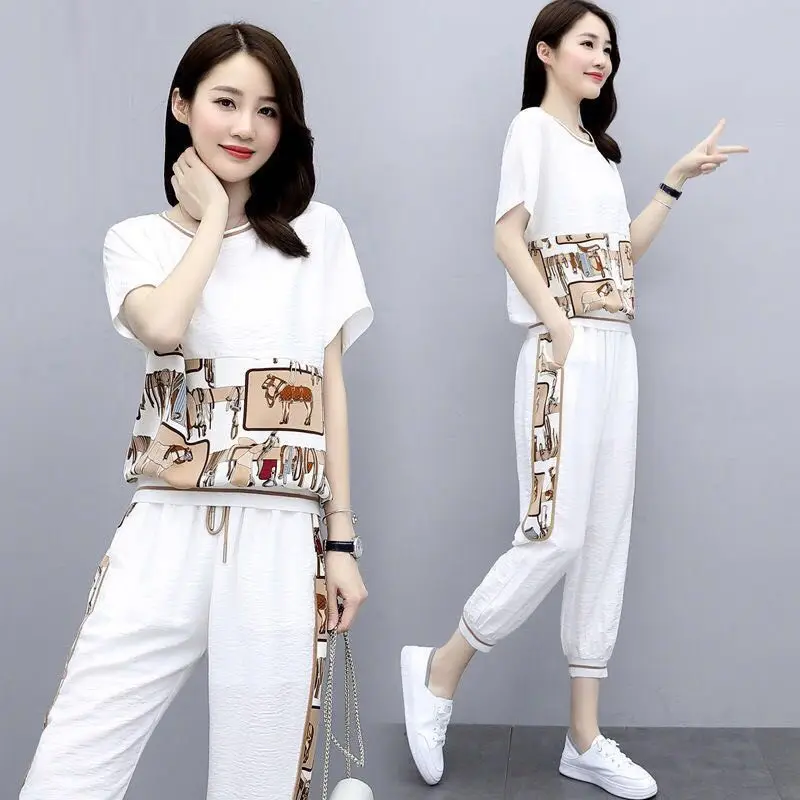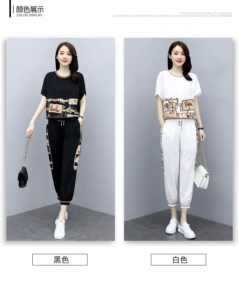 Комплекты из топа и брюк, спортивный костюм для отдыха, женский летний свободный Универсальный спортивный костюм с коротким рукавом, блузки, одежда, костюм для тренировок