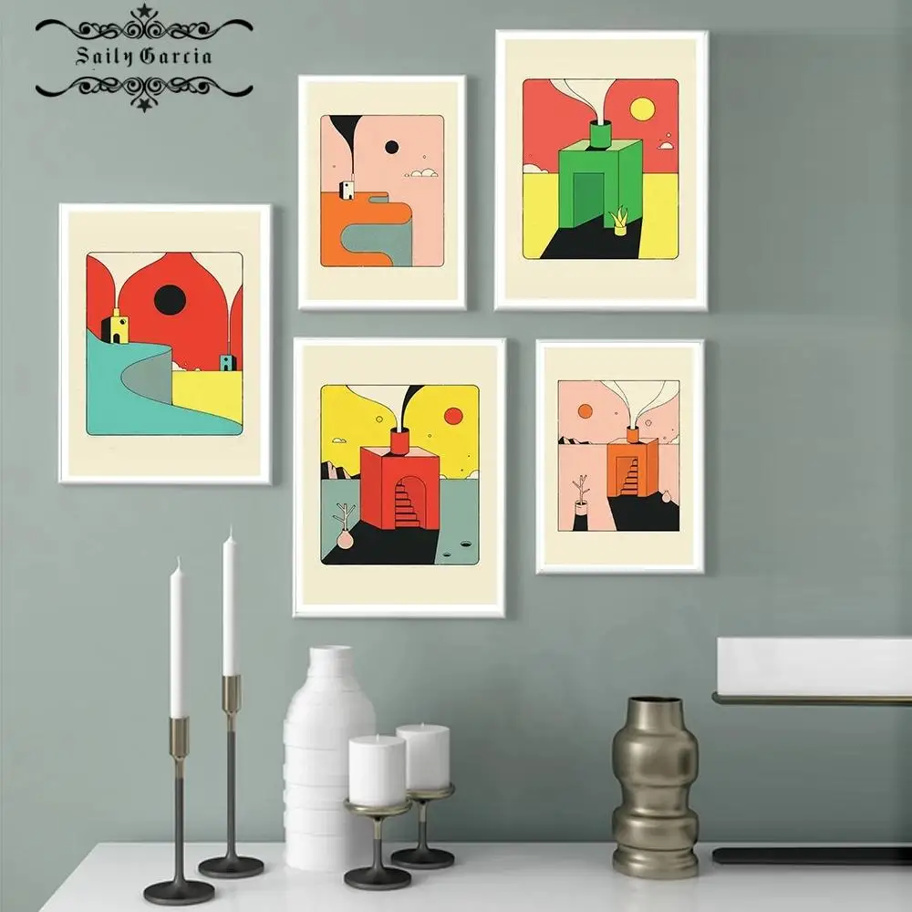 Плакат на холсте, с изображением каньона, заката, яшмы, синего цвета, абстрактный зеленый, красный дом, настенный принт, картины для спальни, домашний декор