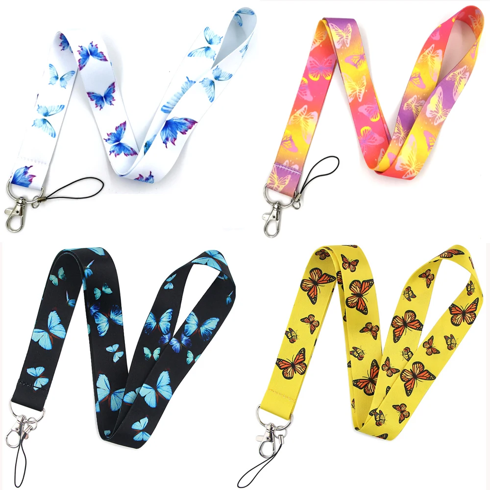 Ремешки для ключей с бабочкой, шнурки для ключей, USB-брелок для ID-карты, держатель для ключей, ленточный шнур для ключей, подвесные аксессуары для мобильных телефонов