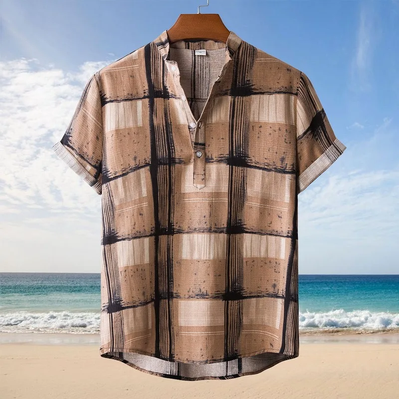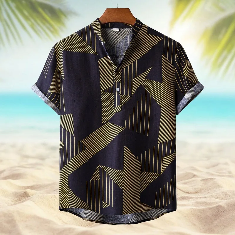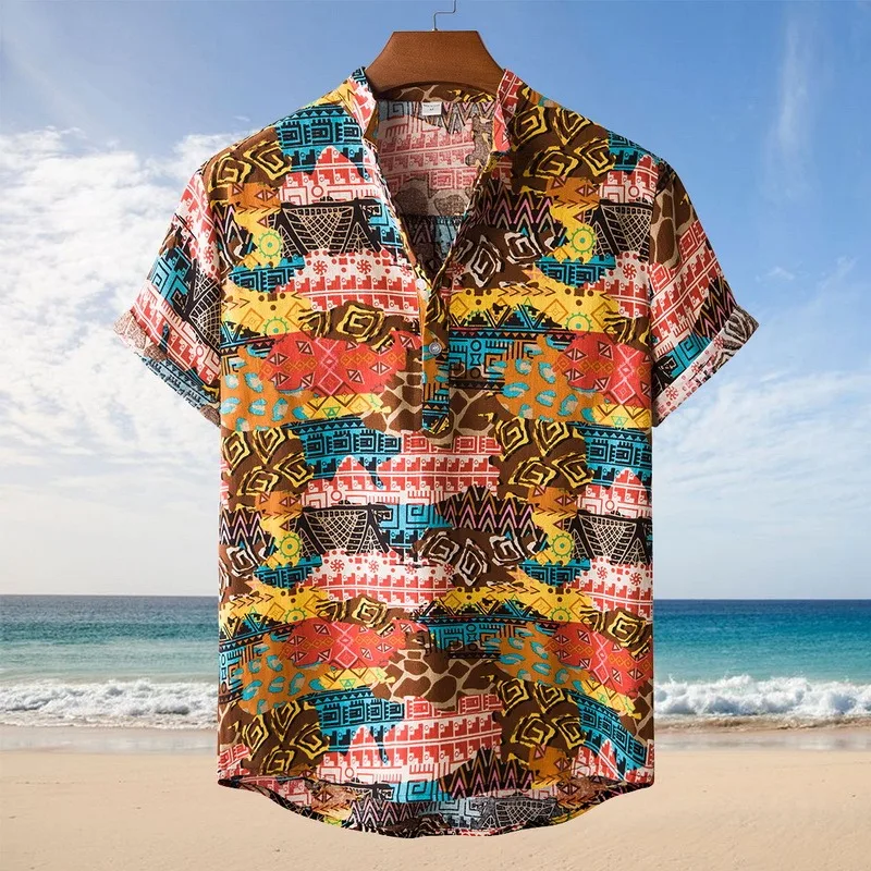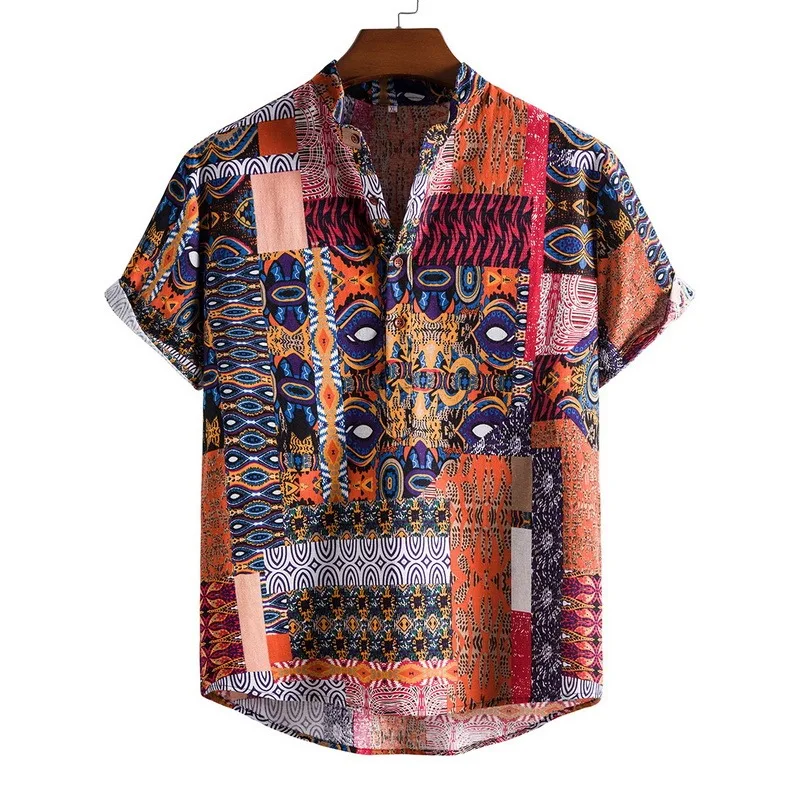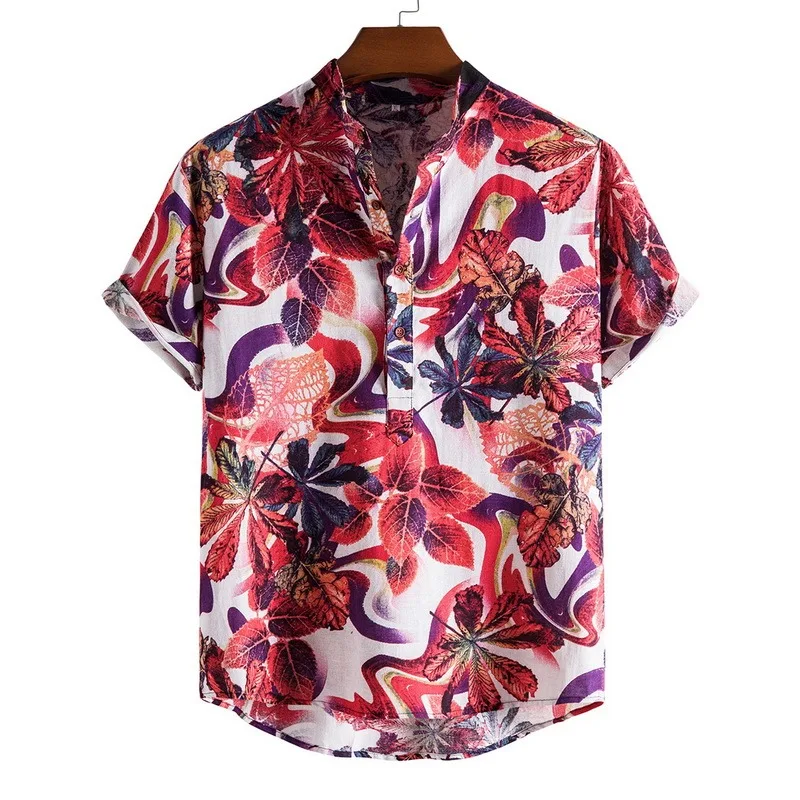 Льняная рубашка с коротким рукавом, мужская, летняя, Цветочная, свободная, мешковатая, повседневная, гавайская, праздничная, Пляжная рубашка, топы, блузка на пуговицах, в национальном стиле