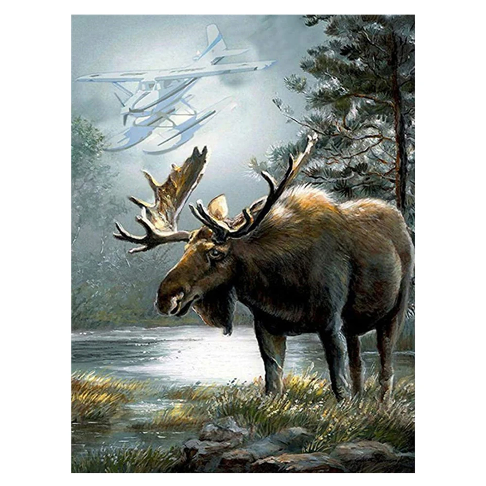 Алмазная 5D картина LZAIQIZG, полноразмернаякруглая вышивка крестиком с лосями, оленями, картина с животными, украшение для дома