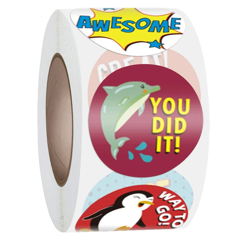 50-500 шт., наклейки для поощрения для детей, 8 моделей, школьные наклейки для наград, наклейки для учеников, милые животные, этикетки, 1 дюйм