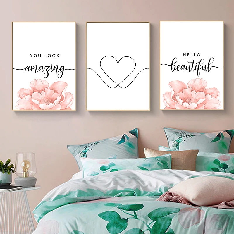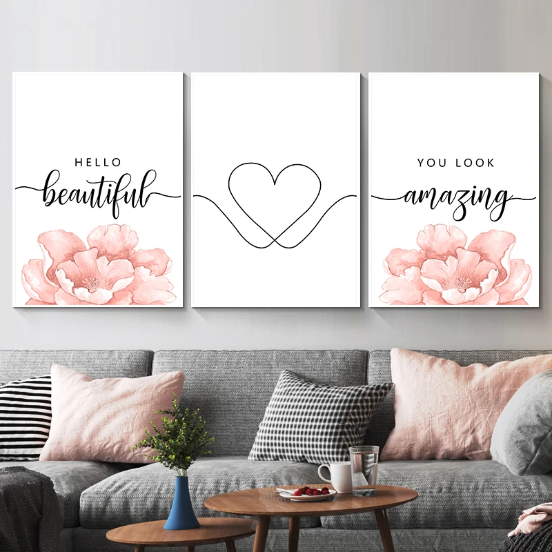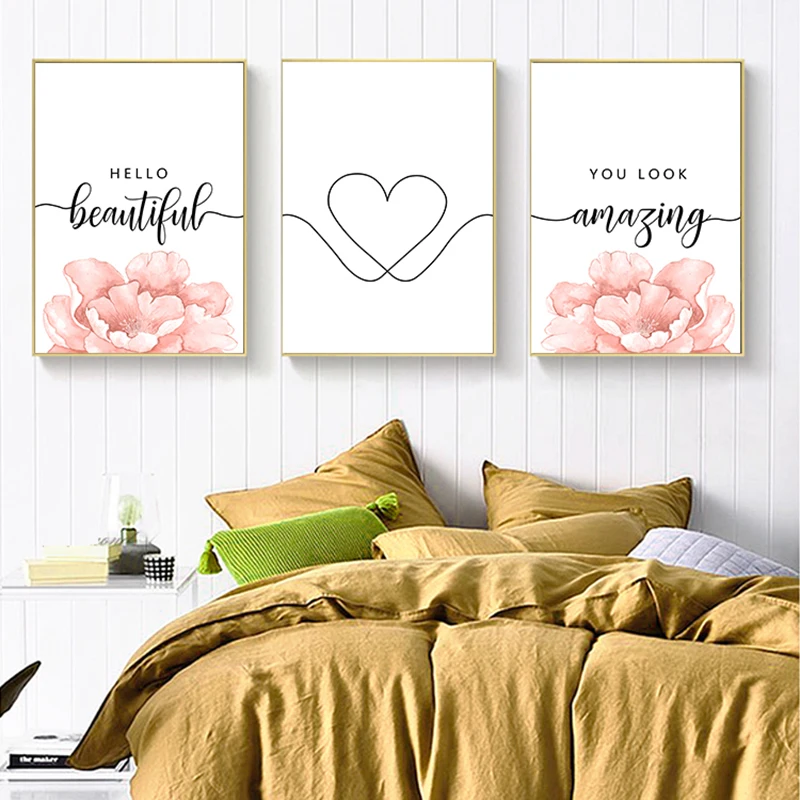 Настенный постер в виде РОЗОВОГО СЕРДЦА, детская Картина на холсте,...