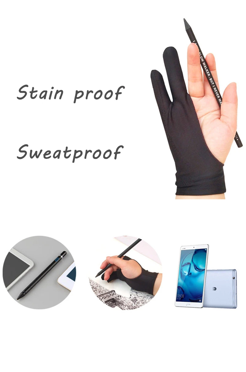 Перчатки для рисования с двумя пальцами LLD, подходят как для правой, так и для левой руки, с защитой от обрастания, для любого графического планшета для рисования