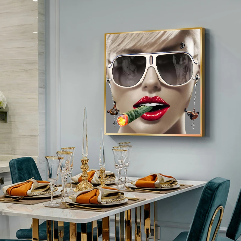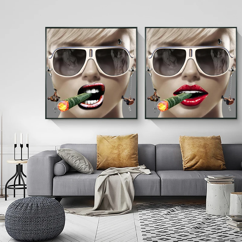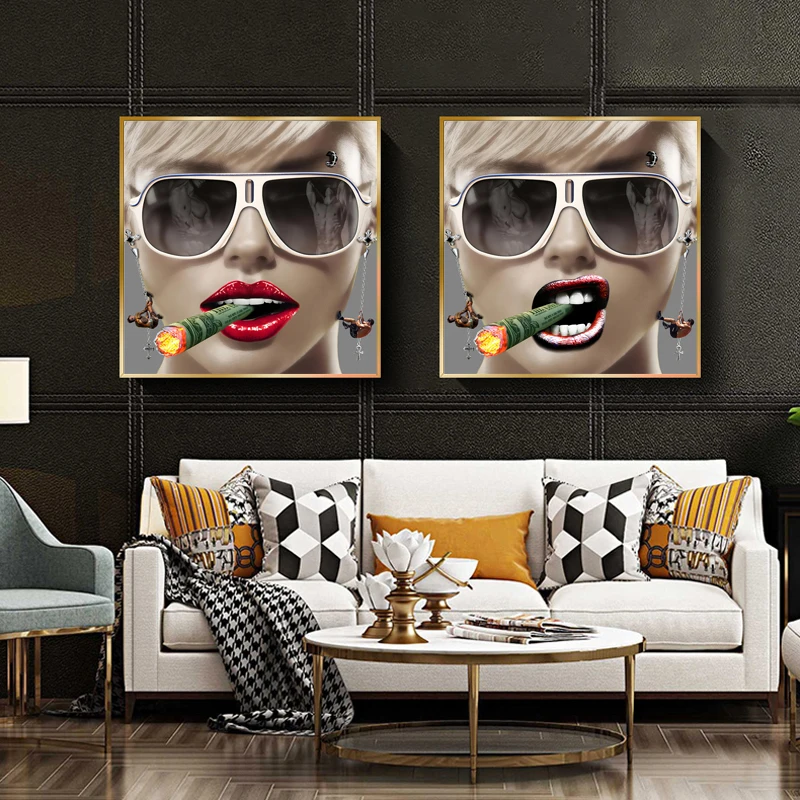 Плакаты и принты сексуальных девушек курительных сигар, настенное искусство, Картина на холсте, крутые очки, женские настенные картины для декора гостиной