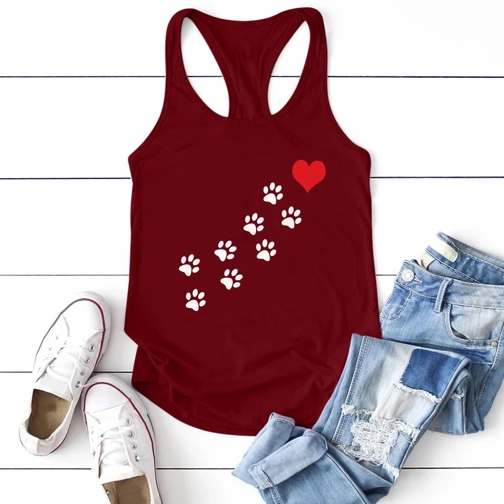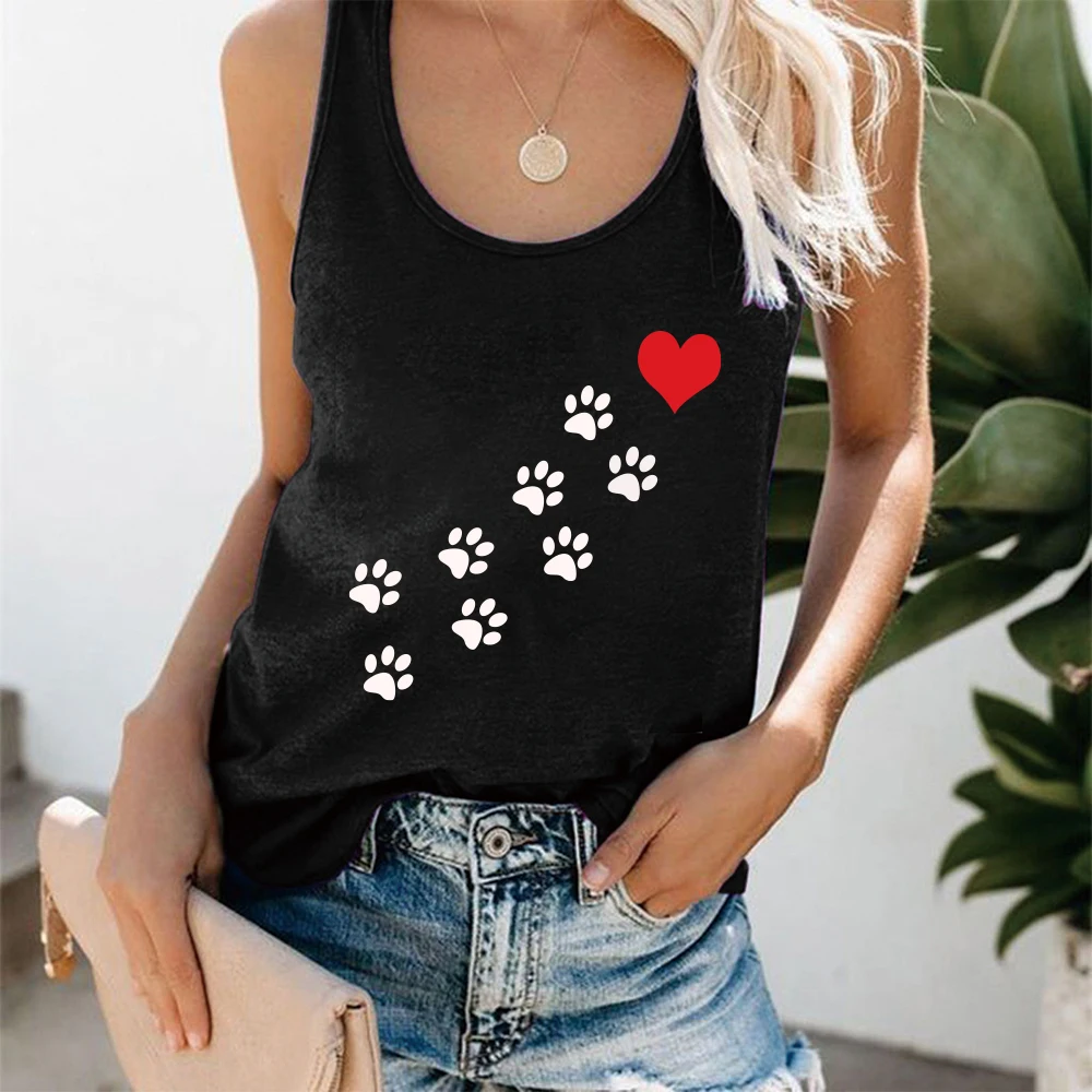 Майка женская в стиле Харадзюку, забавная Свободная майка с принтом собачьей лапы, одежда для женщин, топ без рукавов, модель 2021, на лето