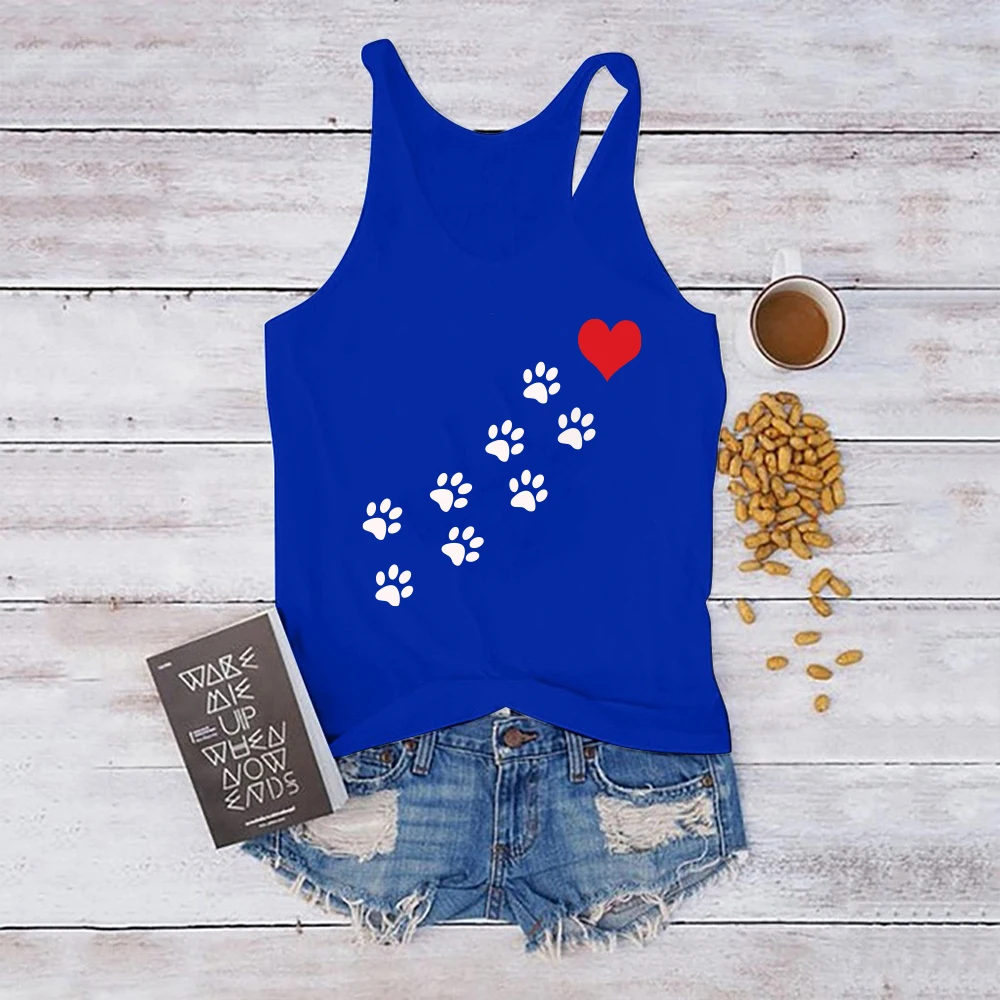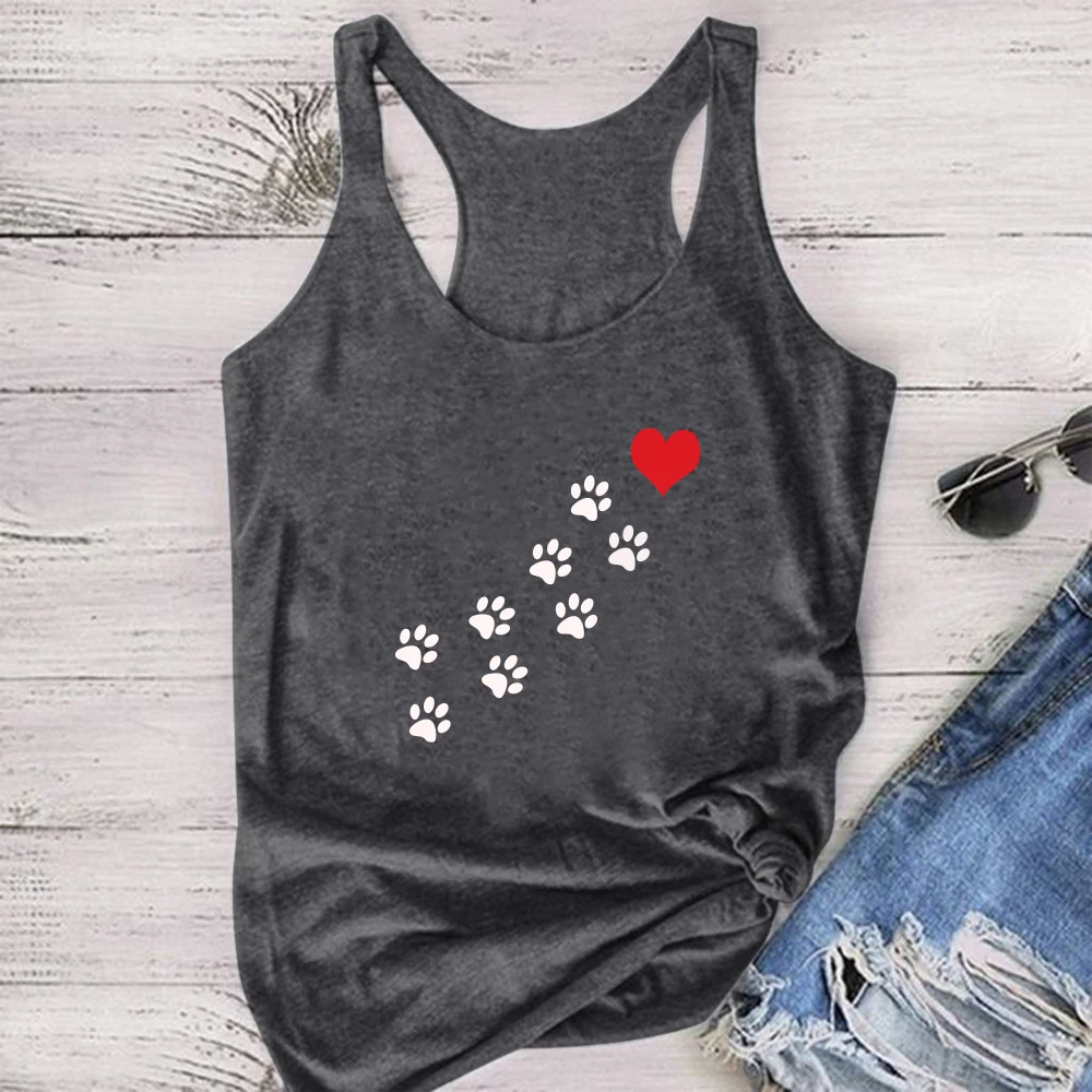 Майка женская в стиле Харадзюку с принтом собачьей лапы, летняя Свободная безрукавка оверсайз, топ без рукавов, 2021