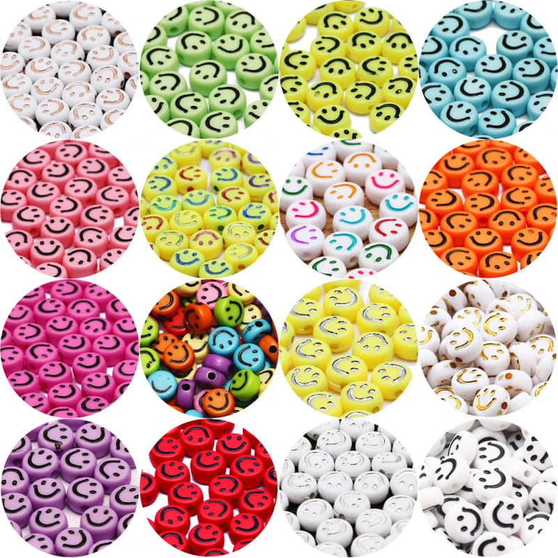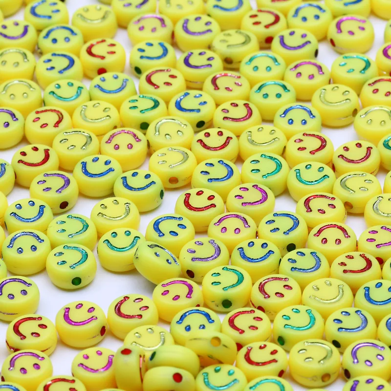 Смешанные смайлики, зернистые плоские бусины-разделители для изготовления ювелирных изделий своими руками, ожерелье ручной работы, круглые акриловые бусины 4*7 мм