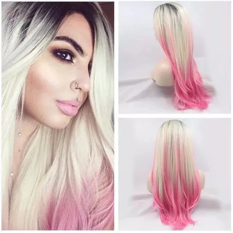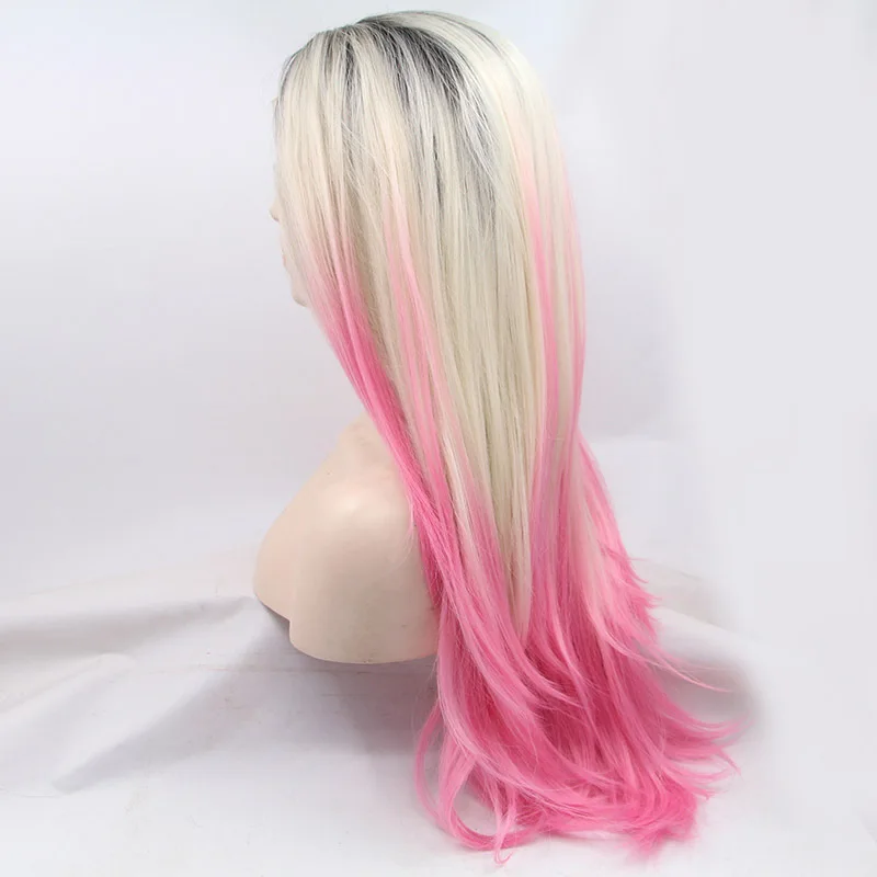 Синтетический Синтетические волосы на кружеве парик Горячая светильник розовый прямые волосы, блонд, эффектом деграде (переход от темного к Лолита парики для чернокожих Для женщин Косплэй фронтальной Синтетические длинные волнистые