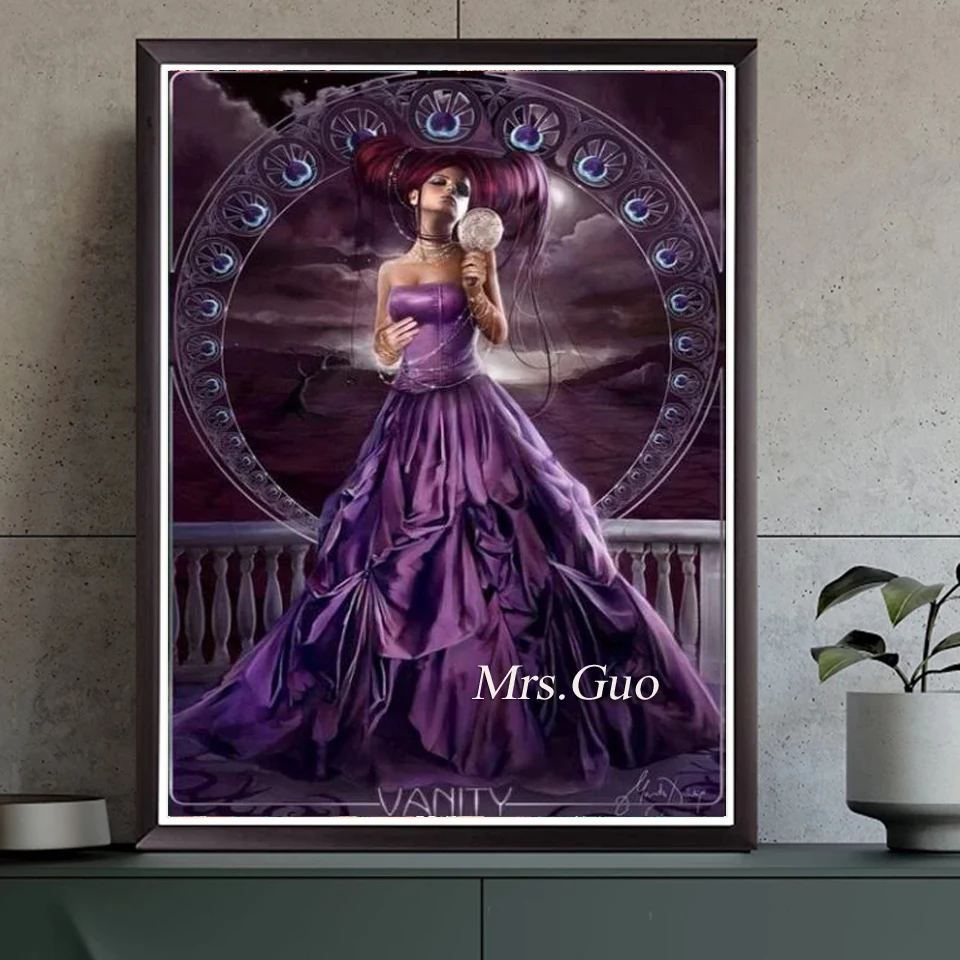 Алмазная живопись, вышивка крестиком, искусство, с фиолетовыми цвет...