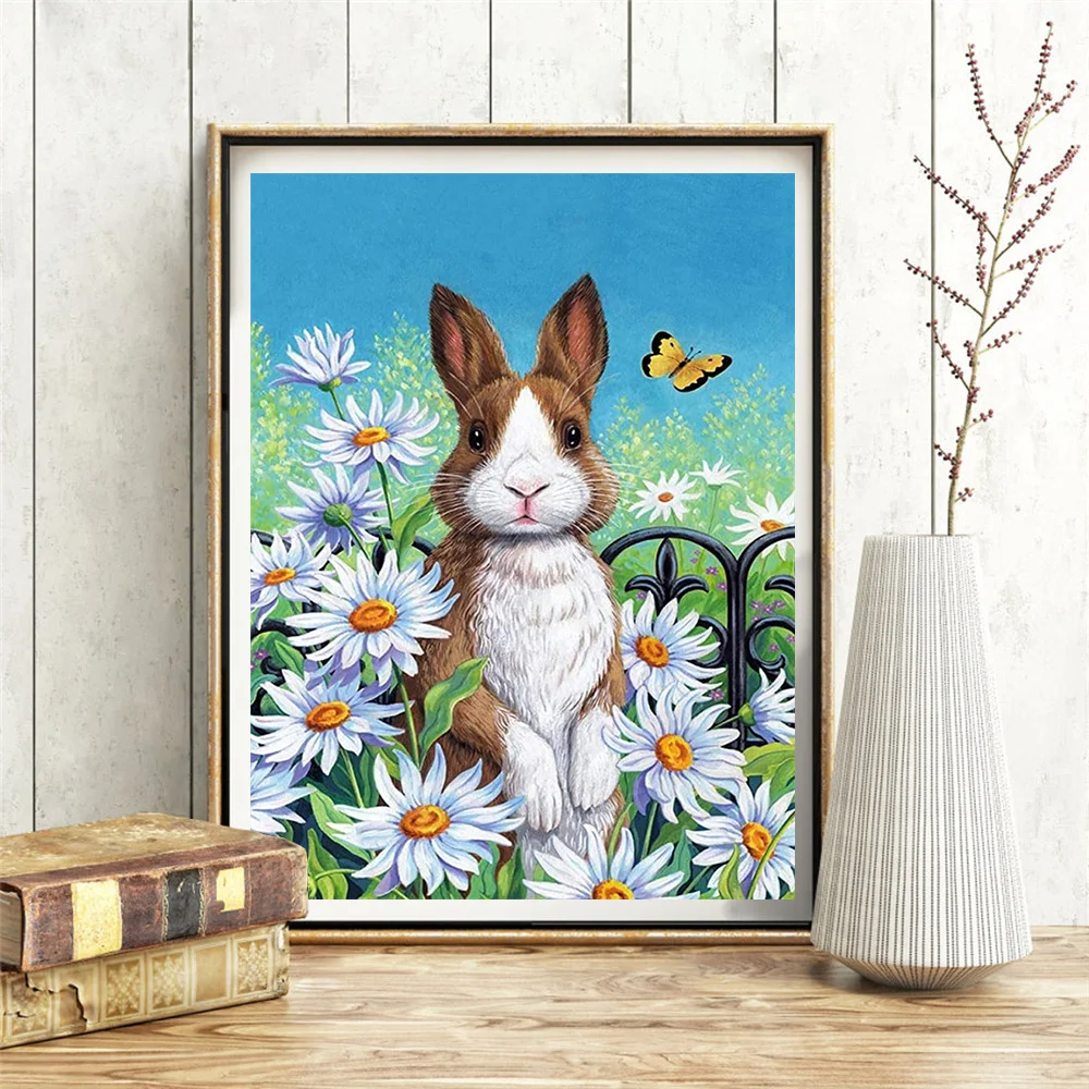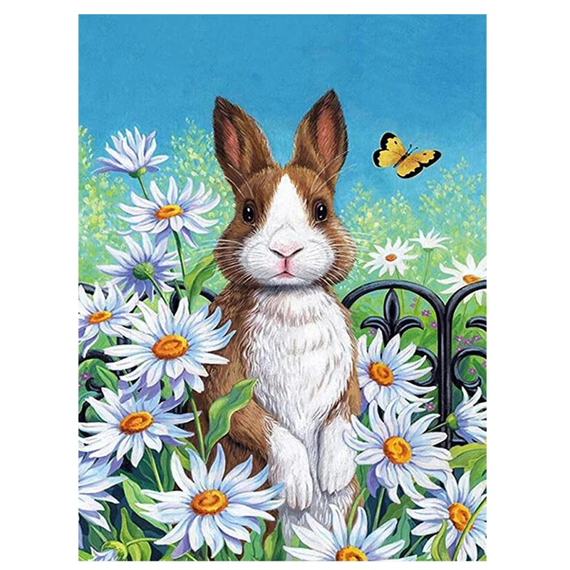 YI яркий 5d Сделай Сам цветок Квадратные Алмазная Вышивка крестом Алмазная вышивка картина с кроликом Стразы украшения дома