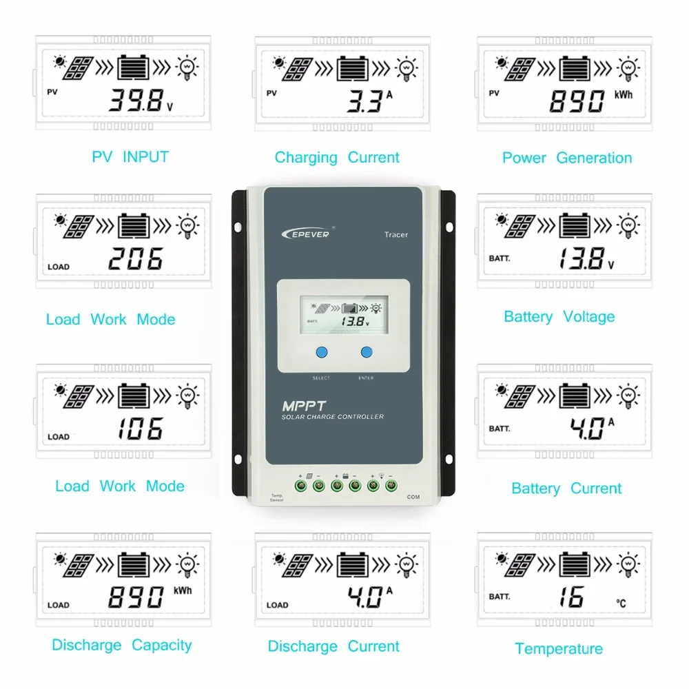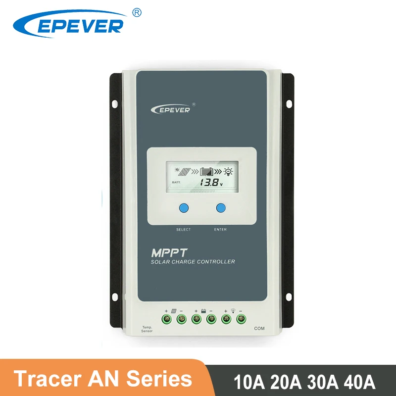 Контроллер солнечного зарядного устройства EPever MPPT, автоматический высокоэффективный регулятор для свинцово-кислотных литиевых аккумуляторов, 40 А 30 А 20 А 10 А, ЖК-дисплей 12 в 24 В