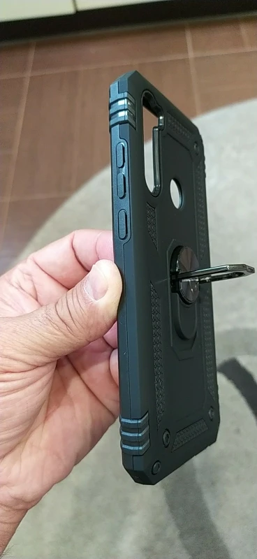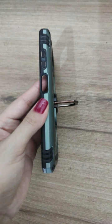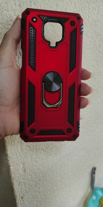 The phone in this case is very mosive, the frames are large-you can glue the thickest glass, the frames will still be more and will not let the edges of the glass. Design for an amateur. The color is not straight red, but scarlet-red-metal, cegan will check. In my hand is very convenient, the Hook gives a sense of safety, now you can take pictures without fear of dropping it.