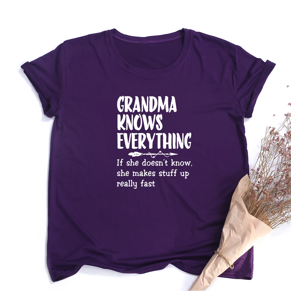 Забавная женская футболка с коротким рукавом, бабушка знает всё, в стиле Харадзюку, подарок бабушке