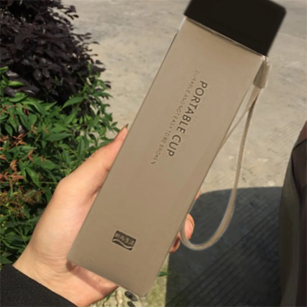 1 шт. прозрачная квадратная пластиковая Матовая бутылка для воды уличная чашка для холодного сока для водных видов спорта с портативной молочной веревкой кружка для воды 2021