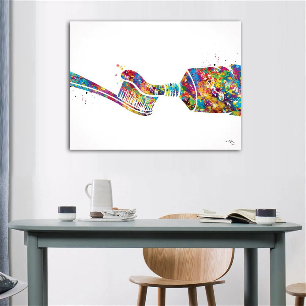 Абстрактной голубой зуб художественные плакаты и принты настенный художественный холст картина зубной пасты, Зубная щётка, зубы картинки для декора комнаты