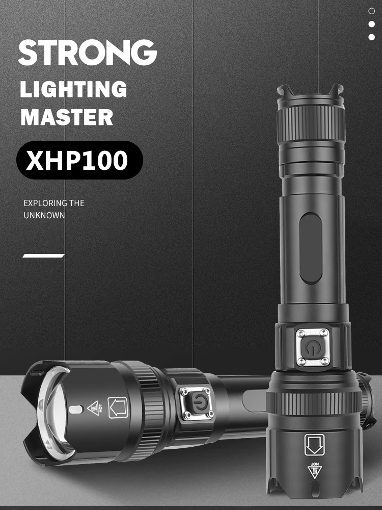 Мощный светодиодный фонарик XHP100, водонепроницаемый Ультраяркий светильник с Usb-зарядкой для путешествий и охоты