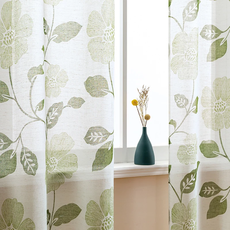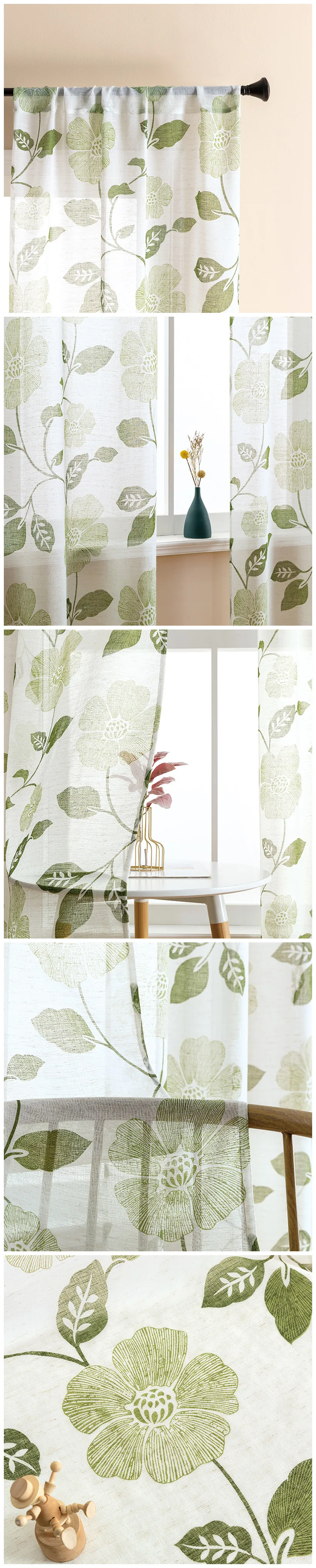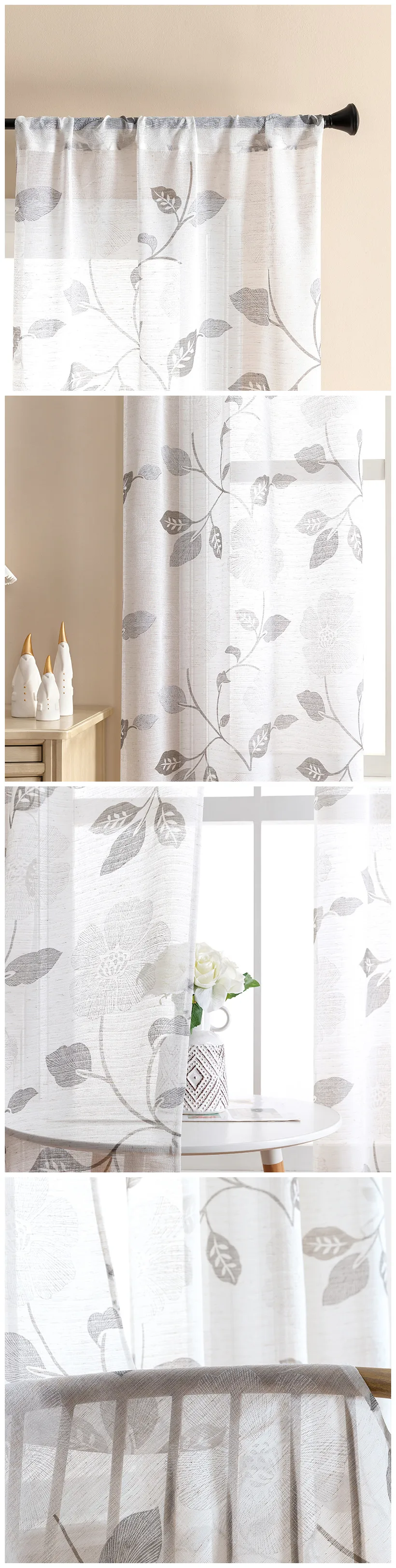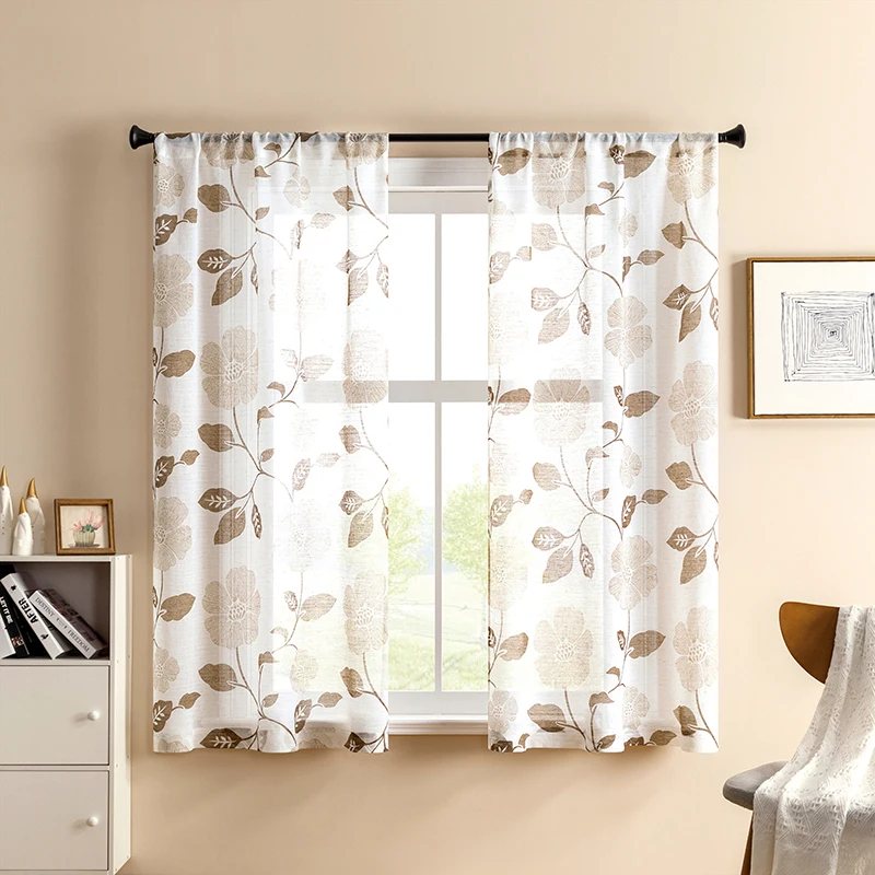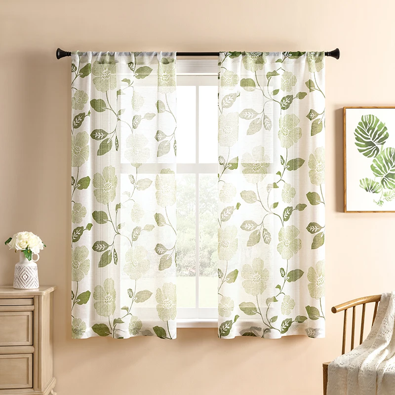 Тюлевые шторы XUNTUO, Короткие прозрачные Занавески с современным принтом листьев, для гостиной, спальни, детской комнаты, кухни, драпировки для окон