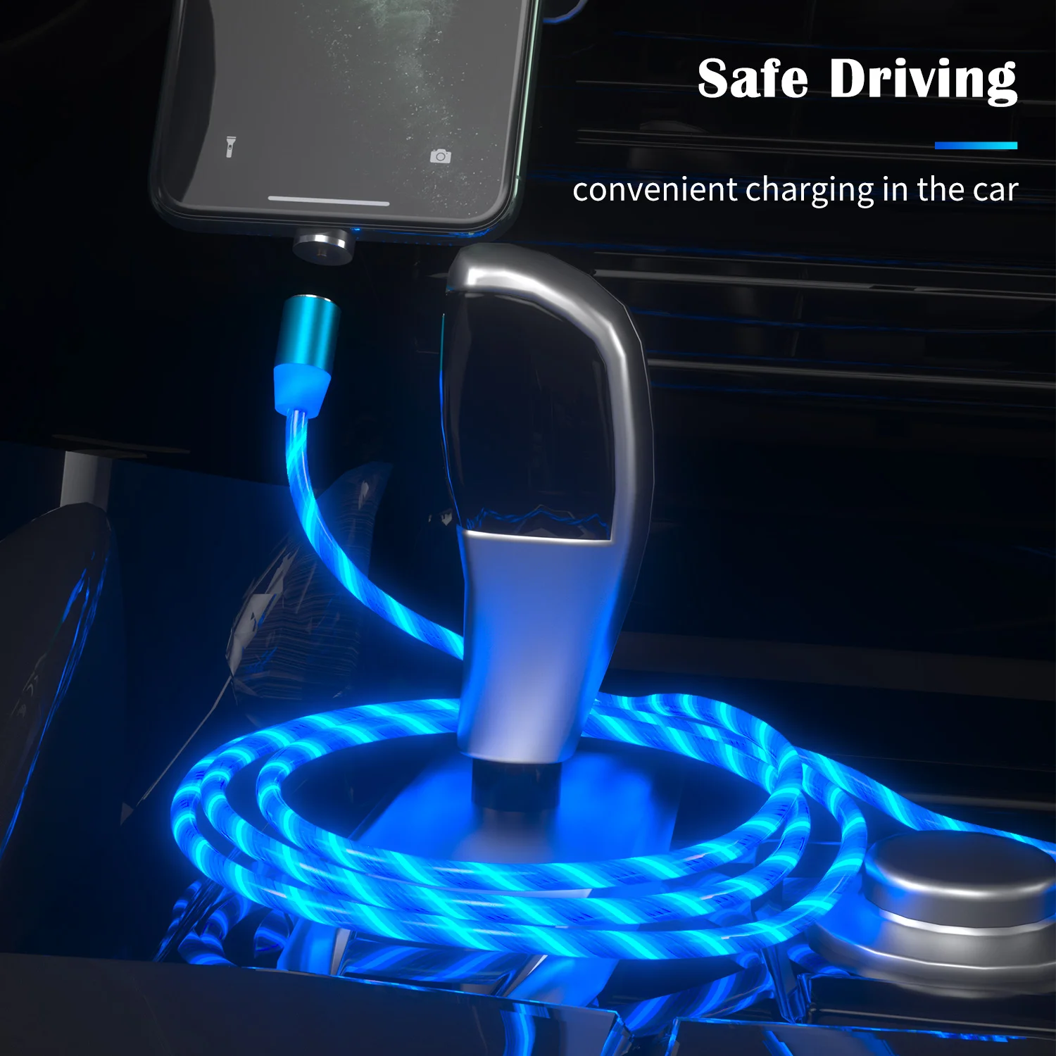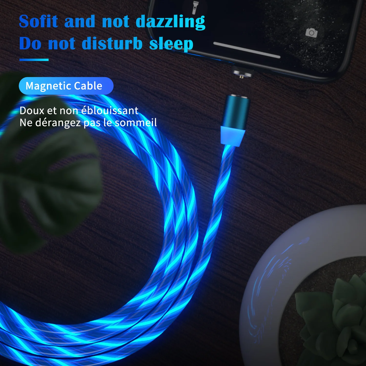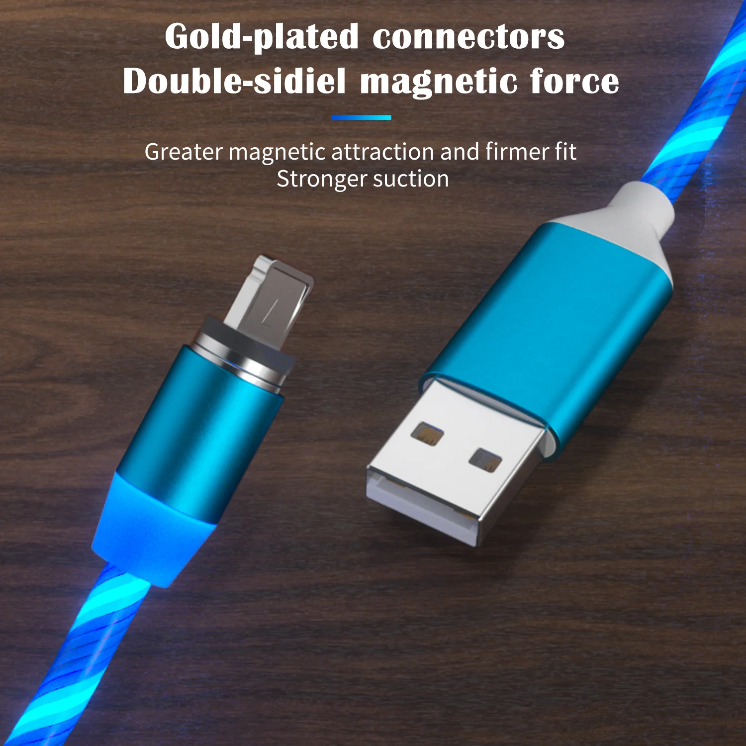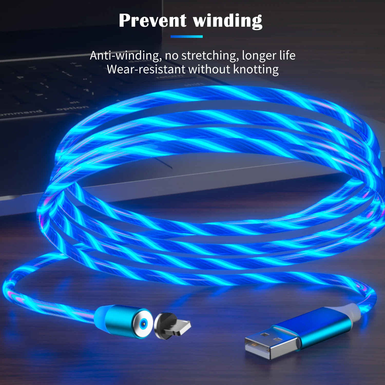 LUPWAY струящиеся легкие Магнитные Мобильный телефон зарядный кабель с портом Micro-USB Type-C IOS светодиодный кабель зарядного устройства для Iphone 12 Samsung Huawei