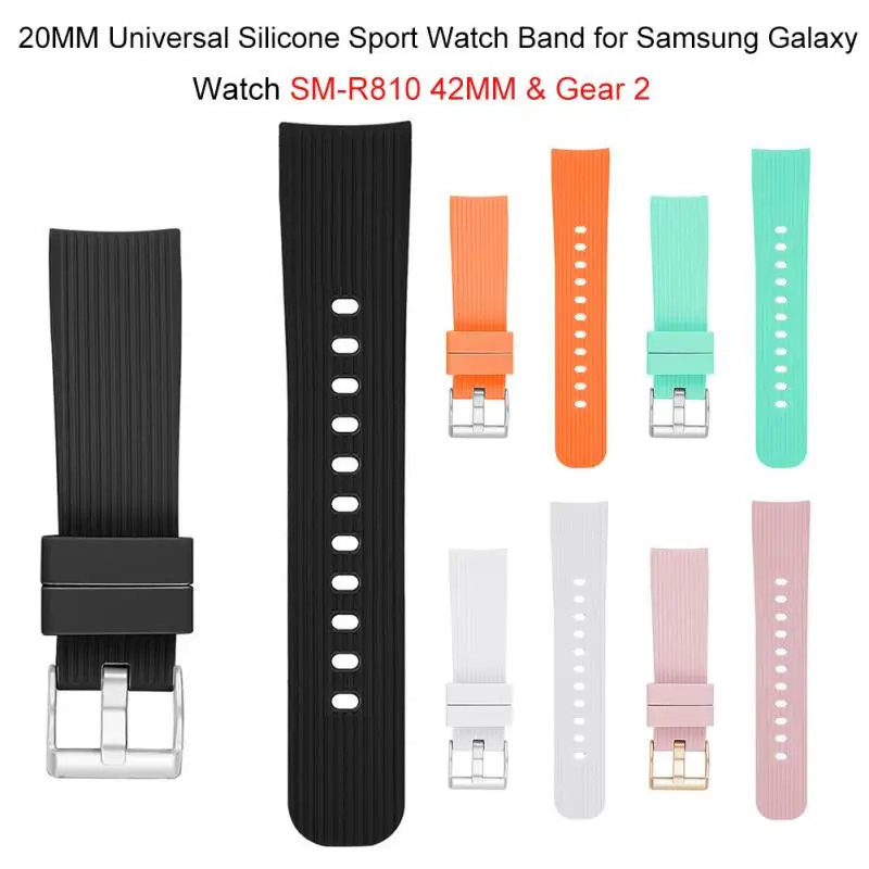 Лидер продаж силиконовый ремешок для наручных часов для Samsung Galaxy Watch SM-R800Galaxy Watch 42 SM-R810 мм Смарт-часы 20 мм спортивный силиконовый ремешок