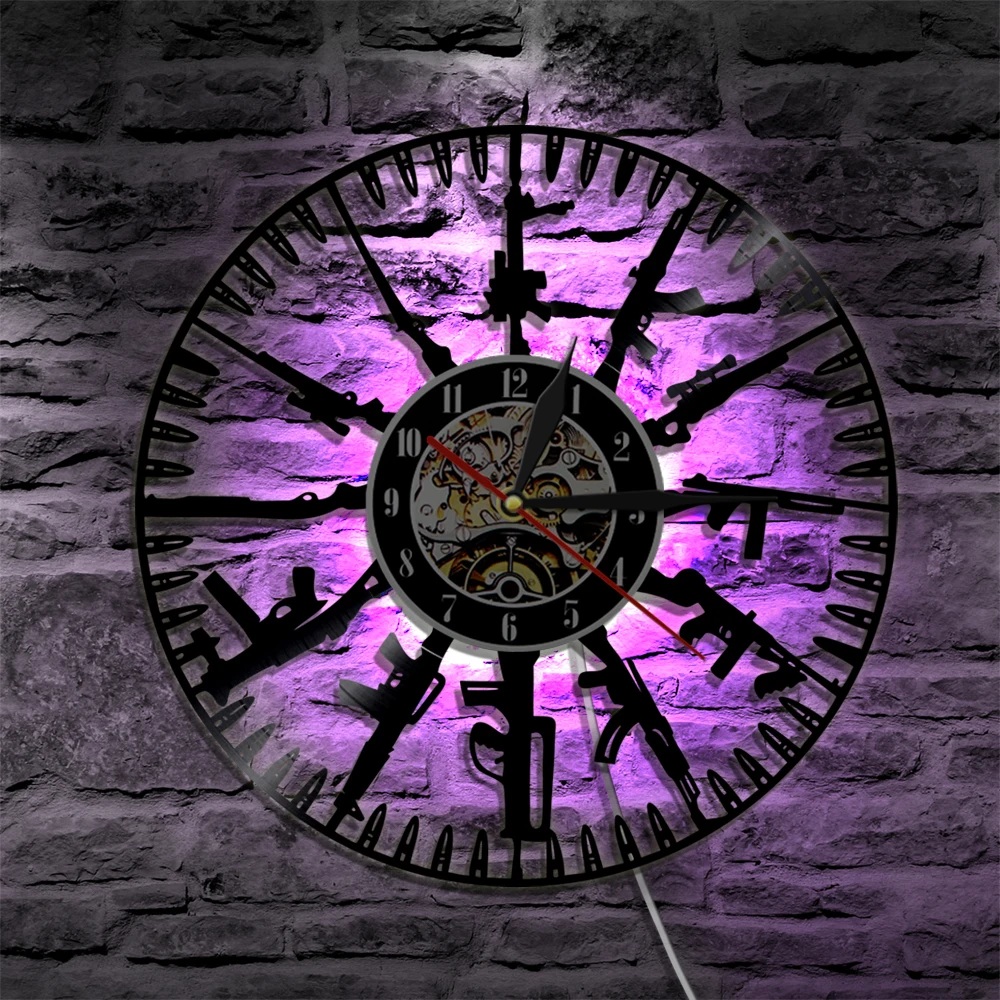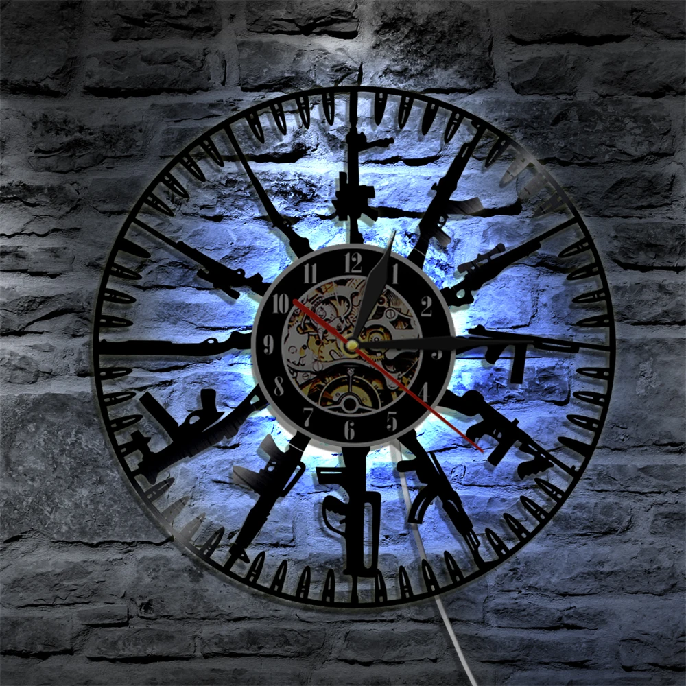 Стреляния оружий настенные часы солдат обучение оружие виниловых пластинок настенные часы таймер современный дизайн домашний декор часы с светильник подарок