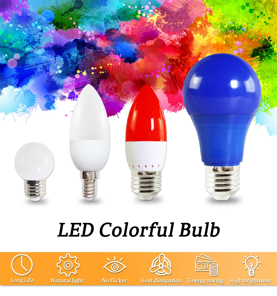 Светодиодная лампочка E27 E14 3 Вт 5 Вт 7 Вт Светодиодная лампа RGB A60 A50 G45 C35 светодиодная свесветильник цветная SMD 2835 220 В переменного тока 240 В