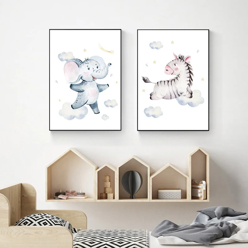 Детская Настенная картина для детской комнаты, Постер со слоном и в...