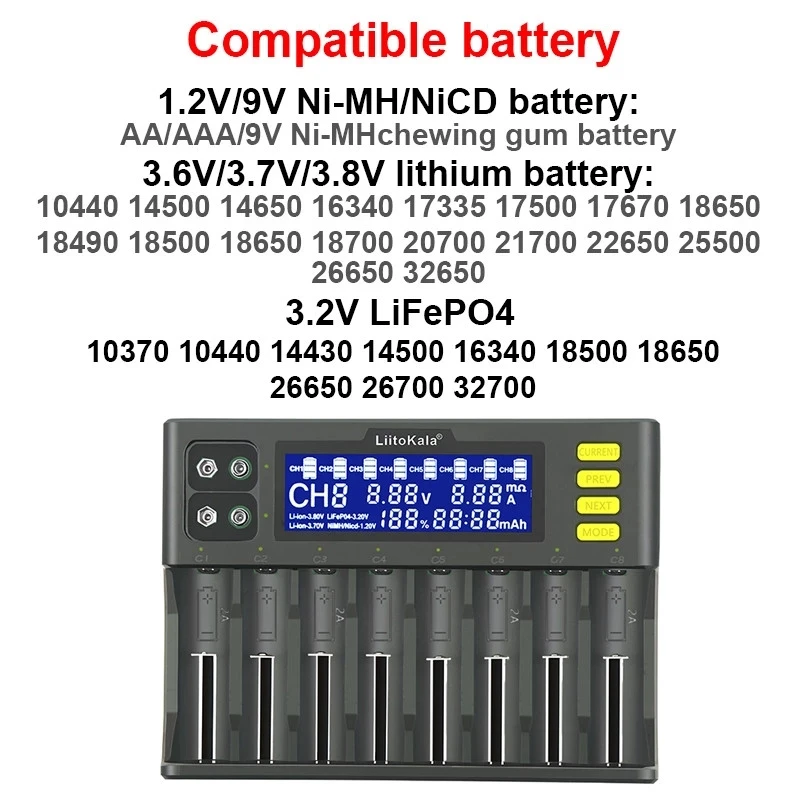 Liitokala lii s8 18650 26650 21700 зарядное устройство для литиевых батарей 1,2 в 3,2 в 3,7 в многофункциональное умное быстрое зарядное устройство с 8 слотами AA AAA LiFePo4