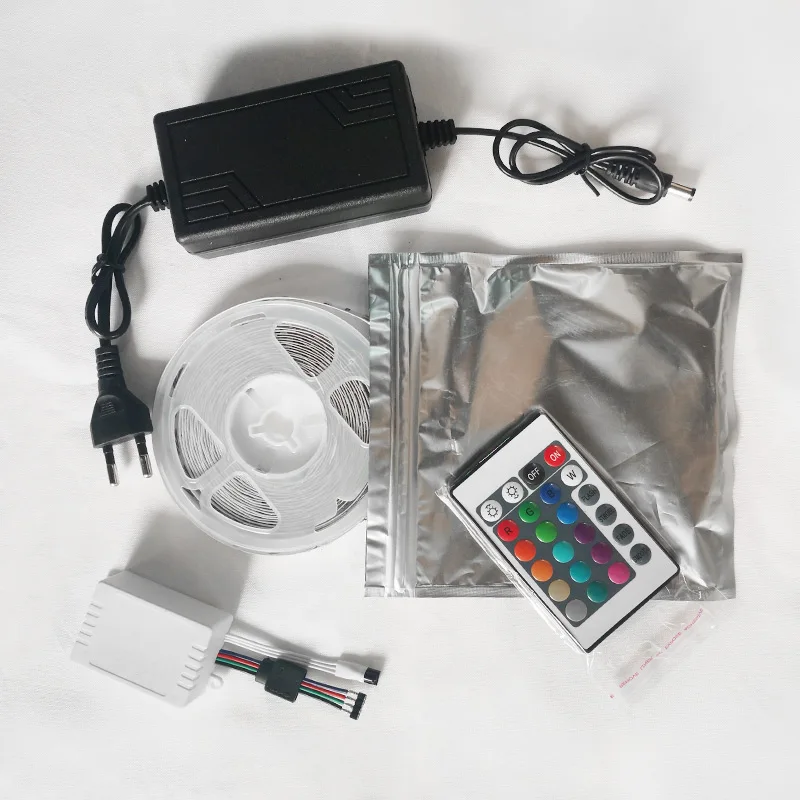1. 5 м/рулон RGB 5050/2835 Светодиодный лента (10 м-2 рулона, 15 М-3 рулона, 20 м-4 рулона)2. Инфракрасный пульт дистанционного управления, Bluetooth пульт дистанционного управления, WIFI Пульт дистанционного управления3. Адаптер питания 12 В постоянного тока (ЕС)4. Пульт дистанционного управления не включает батареи (CR2025)
