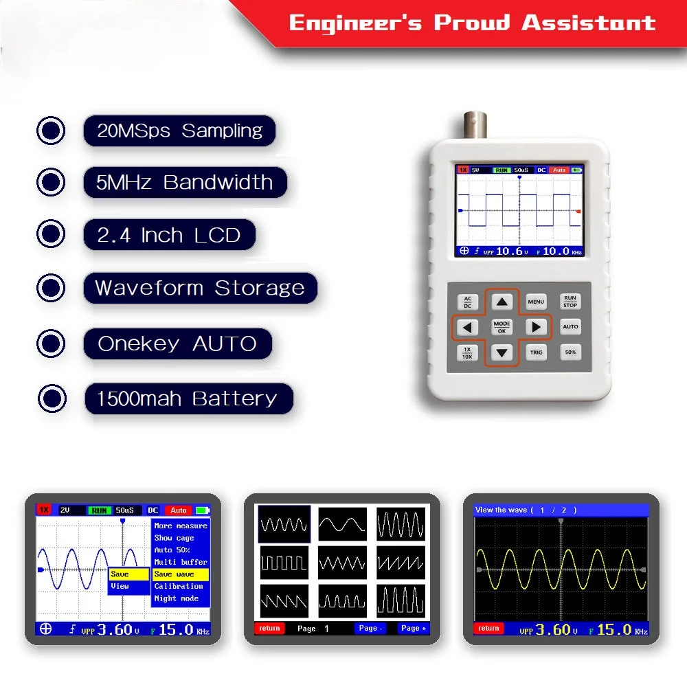 Портативный цифровой мини-осциллограф DSO PRO, портативный осциллограф с цветным дисплеем 2,4 дюйма, полосой пропускания 5 МГц и частотой дискретизации 20 м