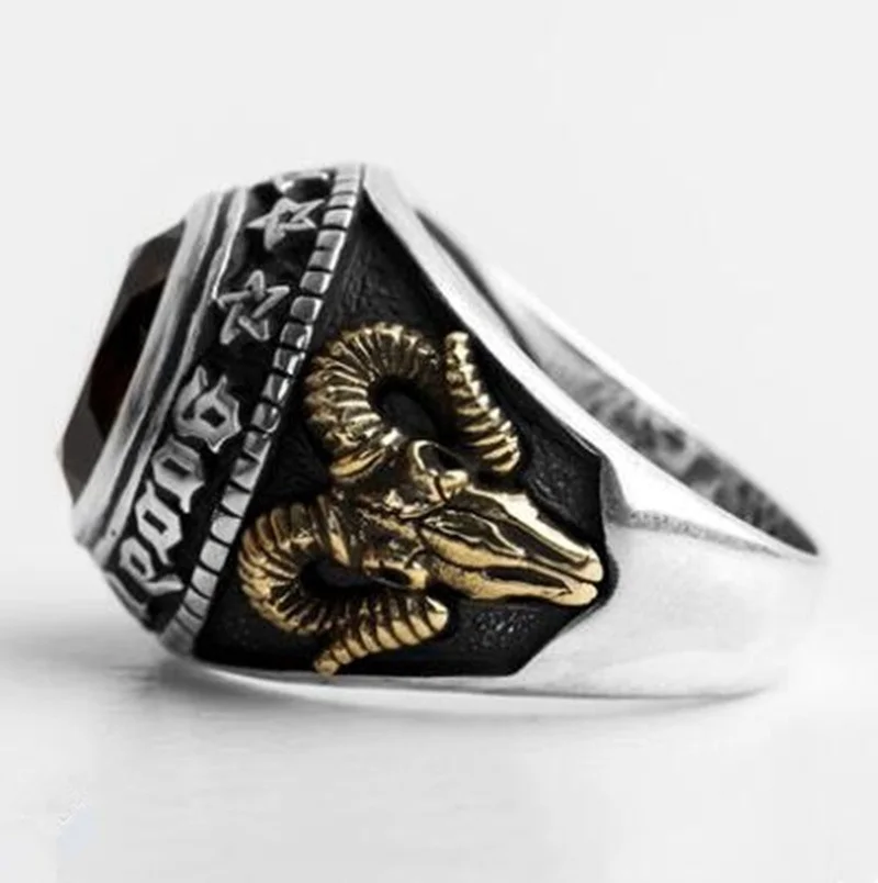 Мужское Винтажное кольцо в готическом стиле, из сплава, с козой сат...