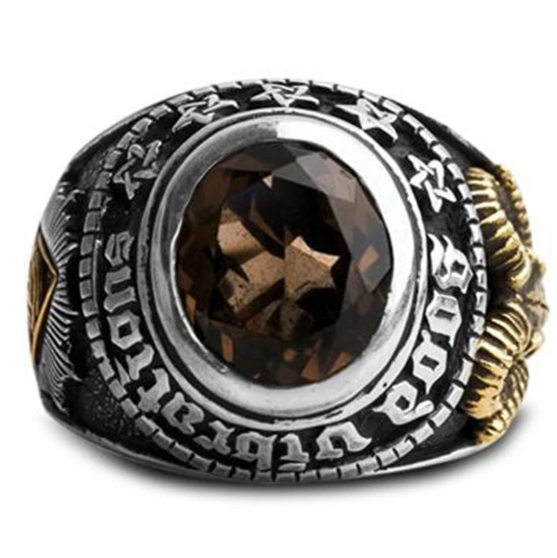 Мужское кольцо из нержавеющей стали с фианитом, Винтажное кольцо с ...