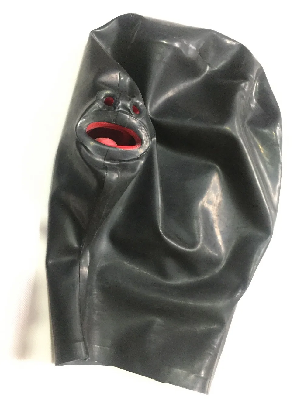 Длинная носовая трубка, латексный капюшон с красными зубцами, кляп ...