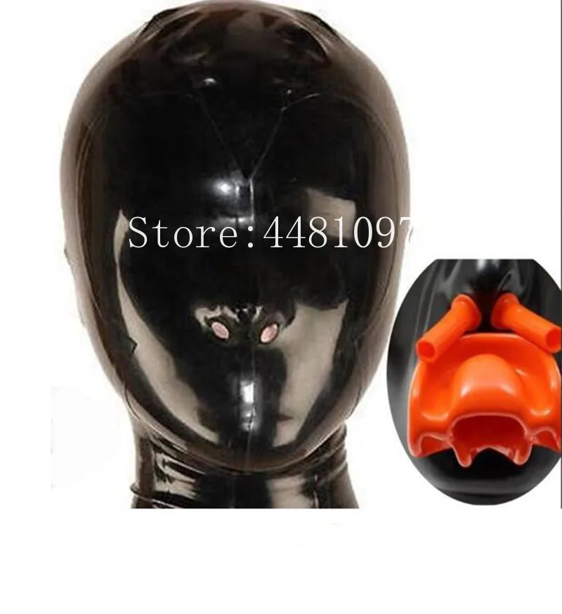 Женская маска из натурального латекса, капюшон с носовой трубкой и ...