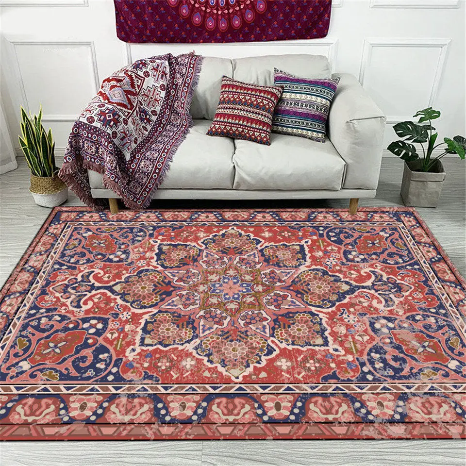 Коврик в этническом стиле для гостиной, персидский, турецкий, винтажный стиль, с цветочным принтом, украшение для спальни, прикроватный коврик, ретро-ковер