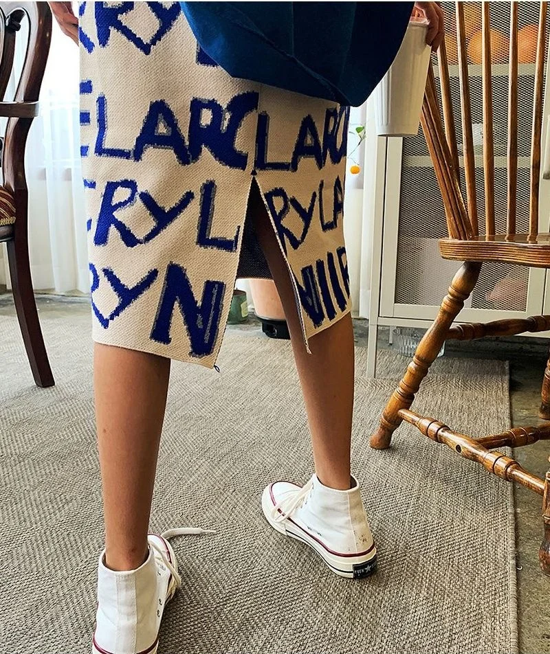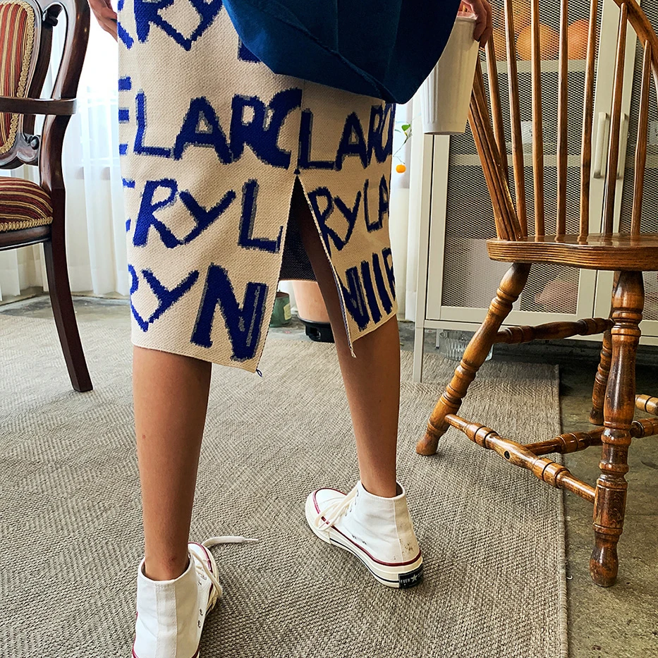 Женская трикотажная юбка с надписью EWQ, универсальная модная повседневная юбка с разрезом и высокой талией, одежда в Корейском стиле 16W159120