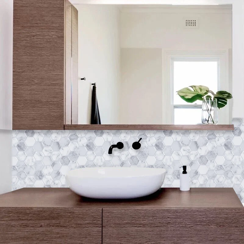 Мраморная Шестигранная настенная наклейка, 3D эффект, самоклеящаяся Водонепроницаемая наклейка s, скребок и Приклеивание, кухонный брызговик, легкая в установке