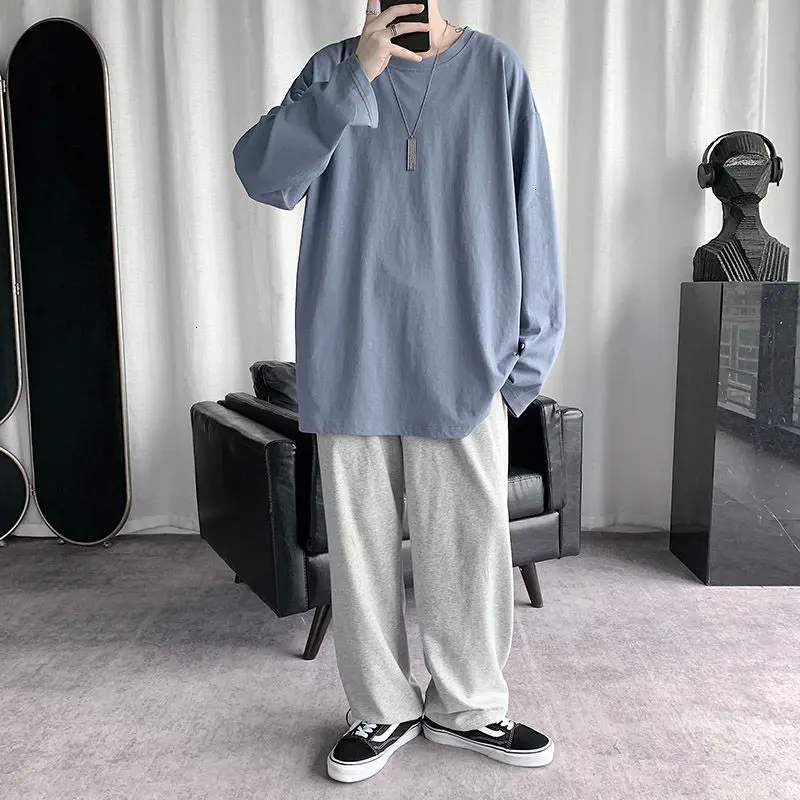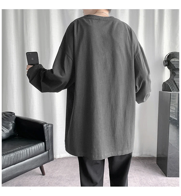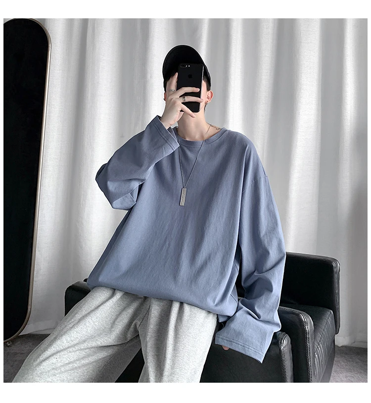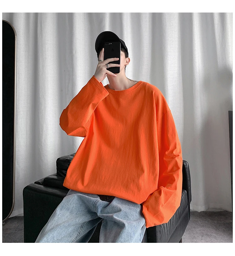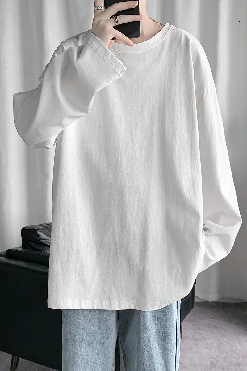 Футболка Privathinker Мужская Базовая, круглый вырез, длинный рукав, однотонная, модная одежда для пар, в Корейском стиле, на весну